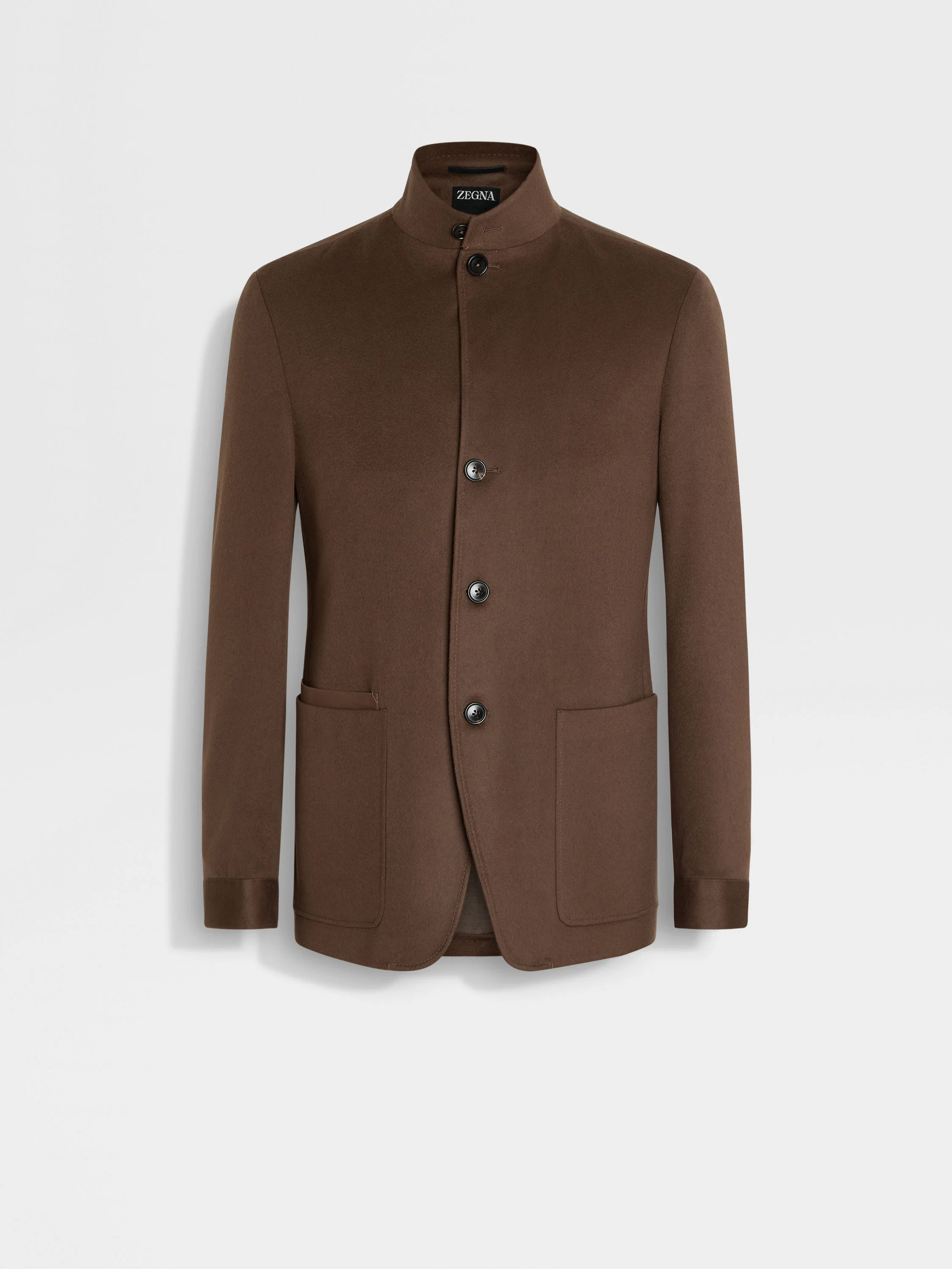 Our Il Conte chore jacket is a formal masterpiece, presented in brown Oasi Cashmere. INFO The authentic allure of natural, fully traceable fibers elevates ZEGNA's iconic Il Conte chore jacket. This brown Oasi Cashmere version is styled with a sleek stand collar, full button closure and our signature 232 Road Brand Mark on the back. Il Conte jacket pays homage to our Founder, Ermenegildo Zegna. He was bestowed the noble title of Count of Monte Rubello in the 1930s by King Vittorio Emanuele III of Italy for the legacy he created as an entrepreneur, philanthropist, and businessman. PRODUCT CODE 269C55A2-1VHKQ0 MATERIALS AND CARE Main body: 100% Cashmere Leather details: Calfskin The inspiration behind this Oasi Cashmere collection garment was born in Oasi Zegna, a 100km² natural territory and the home of our values. It's crafted from Oasi Cashmere fibres, made with 100% certified traceable fibres. The Oasi Cashmere collection follows in the footsteps of our Founder, who envisioned a vertically integrated system of producing textiles. Do not wash. Do not bleach. Do not tumble dry. Iron at max 110°C. Professional dry cleaning in tetrachloroethene and hydrocarbons, mild process. FIT AND PRODUCT DETAILS • Regular fit • Tailoring chore jacket • Single vent • Stand collar • Button closure • Leather ZEGNA 232 Road Brand Mark on the back • Leather mini pocket • Patch pockets • Deconstructed, fused • Half-lined • 73 cm length on size 48