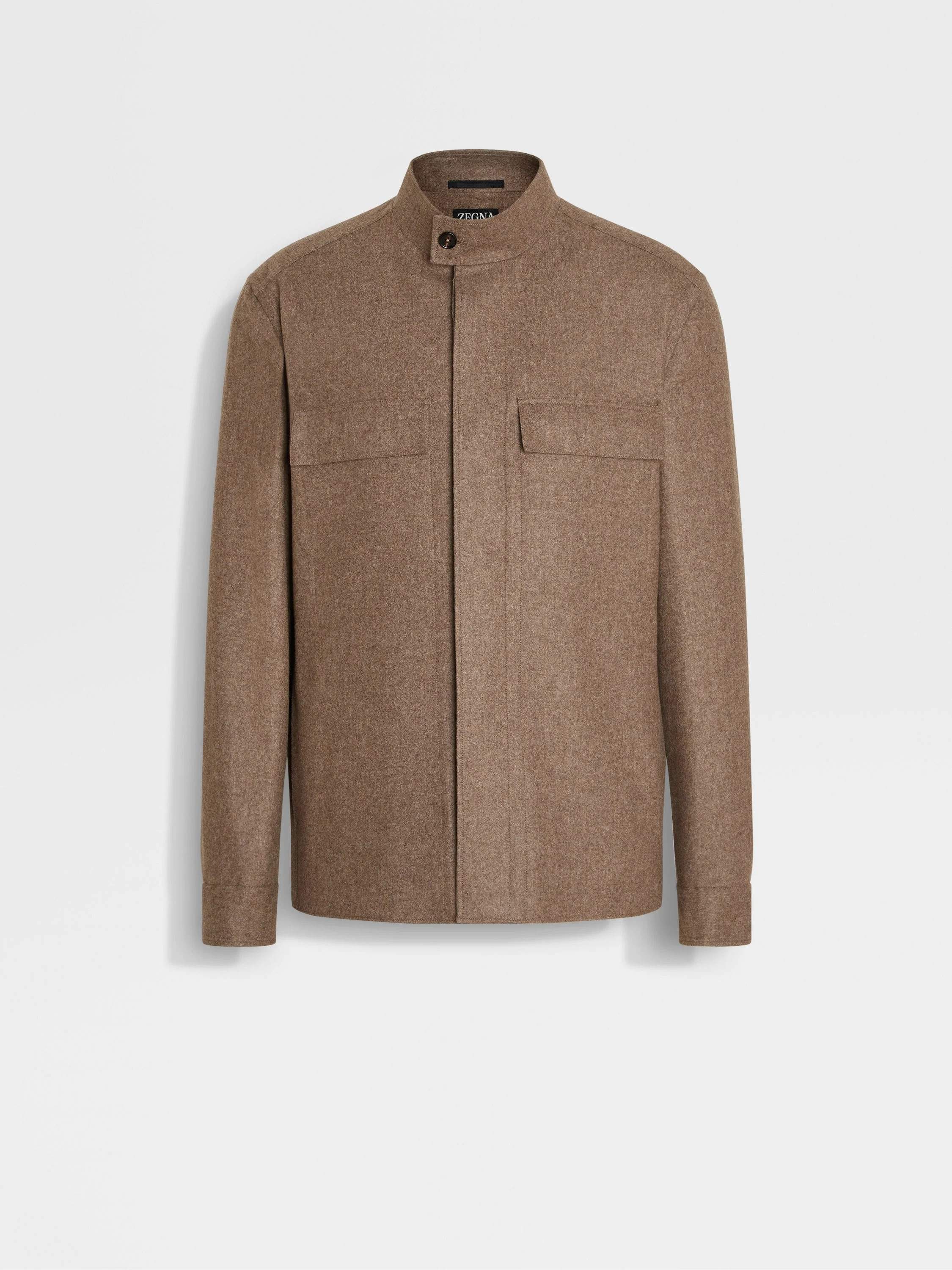 Embrace effortless elegance in this brown Multimelange Oasi Cashmere overshirt. INFO Epitomizing ZEGNA's vision of luxury leisurewear, this overshirt showcases the natural charm of Oasi Cashmere. Its relaxed silhouette features chest pockets, shirt cuffs and a stand collar, enriched with leather accents for a sleek finish. PRODUCT CODE UGV08A2-SOW8-M06 MATERIALS AND CARE Main body: 100% Cashmere Leather details: Calfskin Lining: 85% Cashmere; 15% Cotton The inspiration behind this Oasi Cashmere collection garment was born in Oasi Zegna, a 100km² natural territory and the home of our values. It's crafted from Oasi Cashmere fibres, made with 100% certified traceable fibres. The Oasi Cashmere collection follows in the footsteps of our Founder, who envisioned a vertically integrated system of producing textiles. Do not wash. Do not bleach. Do not tumble dry. Iron at max 110°C. Professional dry cleaning in tetrachloroethene and hydrocarbons, mild process. FIT AND PRODUCT DETAILS • Regular fit • Stand collar • Shirt cuffs • Concealed placket button closure • Flap chest pockets • Leather details • 73 cm length on size 39