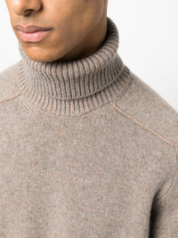 roll-neck cashmere jumper Highlights - Beige - Cashmere - Roll neck - Long sleeves - Knitted construction - Ribbed cuffs and hem - Straight hem Made in Italy Composition Cashmere 100% SIZE & FIT Model measurements Height 6 ft 2 in(1.87 m) Bust/Chest 38.18 in(97 cm) Hips 36.61 in(93 cm) Waist 29.13 in(74 cm) Measurement CHEST 45.66 in(116 cm) SLEEVE LENGTH 25.19 in(64 cm) LENGTH 26.77 in(68 cm) FittingInformation Designed for a relaxed fit, this piece allows for comfort and movement when worn Made with a midweight knit, this piece offers some stretch This piece fits true to size – take your usual size Washing instructions Hand Wash