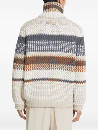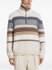 Oasi high-neck striped sweater Highlights - Light beige - Half zip fastening - Horizontal stripes Made in Italy Composition Cashmere 100% Washing instructions Read Manufacturer Guidelines