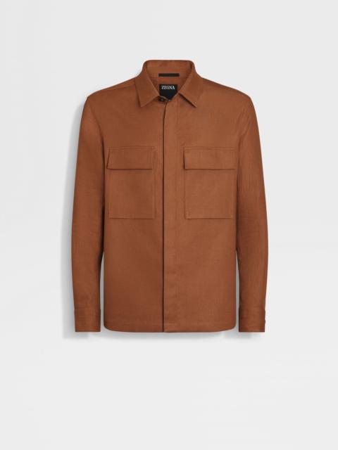 The light beige Oasi Lino overshirt highlights the natural texture of Zegna's exclusive, European-grown flax fibers. INFO As part of Zegna's commitment to sustainability and traceability, the light beige Oasi Lino overshirt is woven from specially sourced linen. This lightweight, breathable material is enhanced with a special jersey membrane for added structure. The casual overshirt is styled with the casual shirt collar and cuffs, while a hidden button closure creates a more streamlined silhouette. PRODUCT CODE UDV60A7-SOT10-N03 MATERIALS AND CARE 100% Linen The inspiration behind this Oasi Lino garment was Born in Oasi Zegna, our 100km² natural territory and the home of our values. Crafted exclusively from European-grown flax fibres that are certified as 100% traceable by 2024, Oasi Lino follows in the footsteps of our founder, who envisioned a vertically integrated system of producing textiles. Do not wash. Do not bleach. Do not tumble dry. Iron at max 110°C. Professional dry cleaning in tetrachloroethene and hydrocarbons, mild process. FIT AND PRODUCT DETAILS • Regular fit • Shirt collar • Shirt cuffs • Concealed button closure • Straight hem • Chest patch pocket with flap • Unlined • Inner membrane • 73 cm length on size 39
