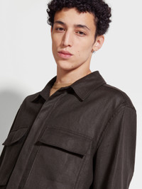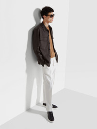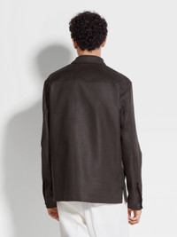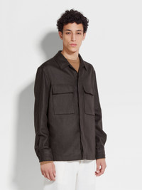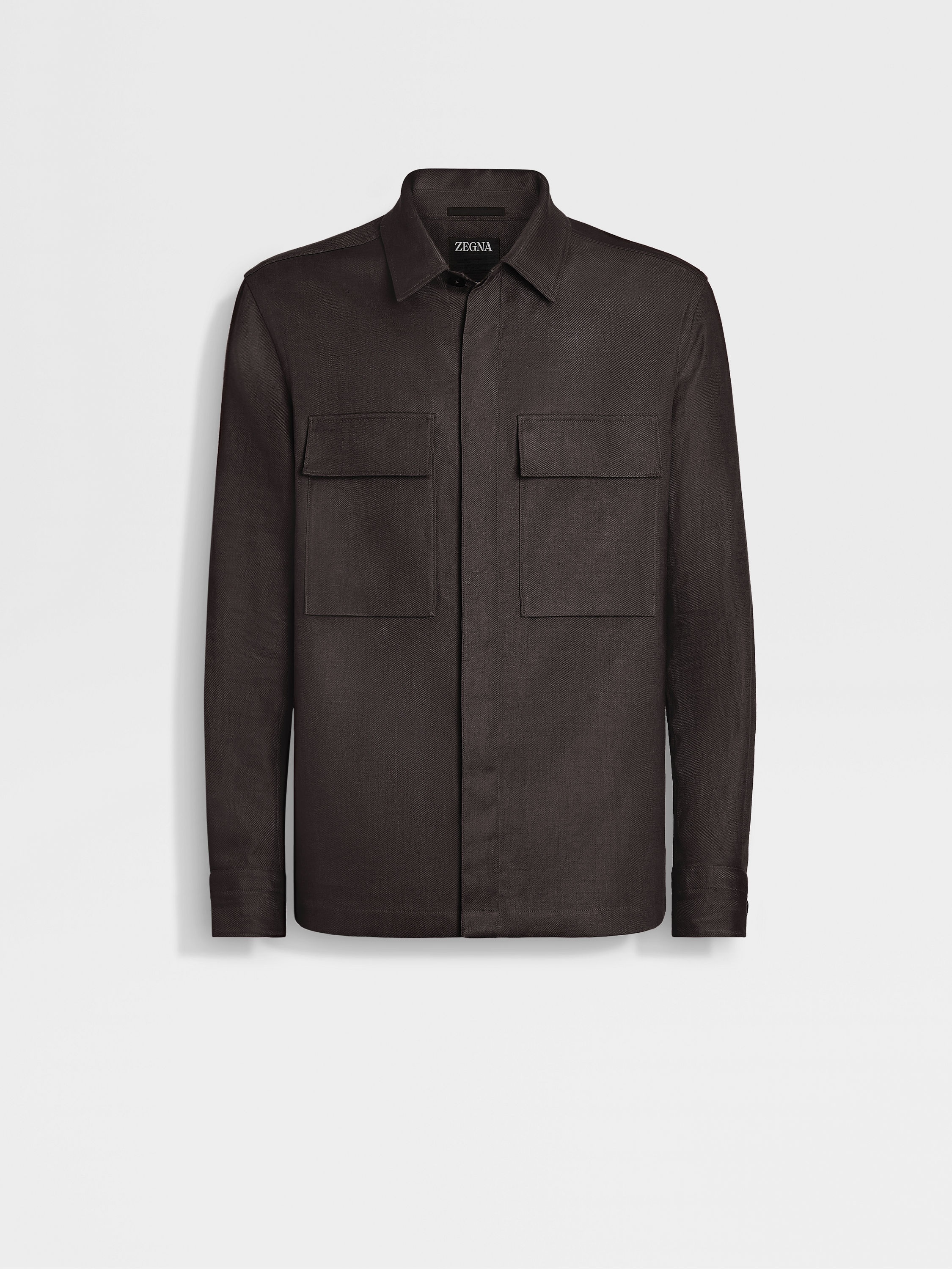The dark brown Oasi Lino overshirt highlights the natural texture of Zegna's exclusive, European-grown flax fibers. INFO As part of Zegna's commitment to sustainability and traceability, the dark brown Oasi Lino overshirt is woven from specially sourced linen. This lightweight, breathable material is enhanced with a special jersey membrane for added structure. The casual overshirt is styled with the classic shirt collar and cuffs, while a hidden button closure creates a more streamlined silhouette. PRODUCT CODE UDV60A7-SOT10-M09 MATERIALS AND CARE 100% Linen The inspiration behind this Oasi Lino garment was Born in Oasi Zegna, our 100km² natural territory and the home of our values. Crafted exclusively from European-grown flax fibres that are certified as 100% traceable by 2024, Oasi Lino follows in the footsteps of our founder, who envisioned a vertically integrated system of producing textiles. Do not wash. Do not bleach. Do not tumble dry. Iron at max 110°C. Professional dry cleaning in tetrachloroethene and hydrocarbons, mild process. FIT AND PRODUCT DETAILS • Regular fit • Shirt collar • Shirt cuffs • Concealed button closure • Straight hem • Chest patch pocket with flap • Unlined • Inner membrane • 73 cm length on size 39 • Model is 185 cm tall (6.0 feet) and wears an Italian size 48.