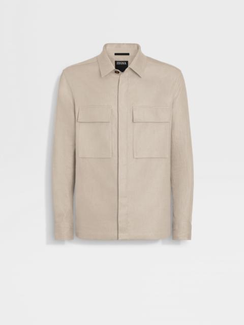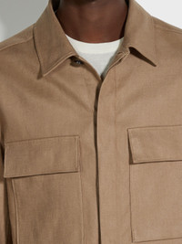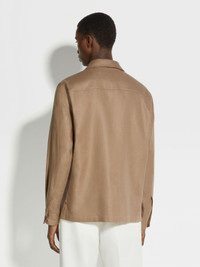 The dark beige Oasi Lino overshirt highlights the natural texture of Zegna's exclusive, European-grown flax fibers. INFO As part of Zegna's commitment to sustainability and traceability, the dark beige Oasi Lino overshirt is woven from specially sourced linen. This lightweight, breathable material is enhanced with a special jersey membrane for added structure. The casual overshirt is styled with the classic shirt collar and cuffs, while a hidden button closure creates a more streamlined silhouette. PRODUCT CODE UDV60A7-SOT10-N04 MATERIALS AND CARE 100% Linen The inspiration behind this Oasi Lino garment was Born in Oasi Zegna, our 100km² natural territory and the home of our values. Crafted exclusively from European-grown flax fibres that are certified as 100% traceable by 2024, Oasi Lino follows in the footsteps of our founder, who envisioned a vertically integrated system of producing textiles. Do not wash. Do not bleach. Do not tumble dry. Iron at max 110°C. Professional dry cleaning in tetrachloroethene and hydrocarbons, mild process. FIT AND PRODUCT DETAILS • Regular fit • Shirt collar • Shirt cuffs • Concealed button closure • Straight hem • Chest patch pocket with flap • Unlined • Inner membrane • 73 cm length on size 39