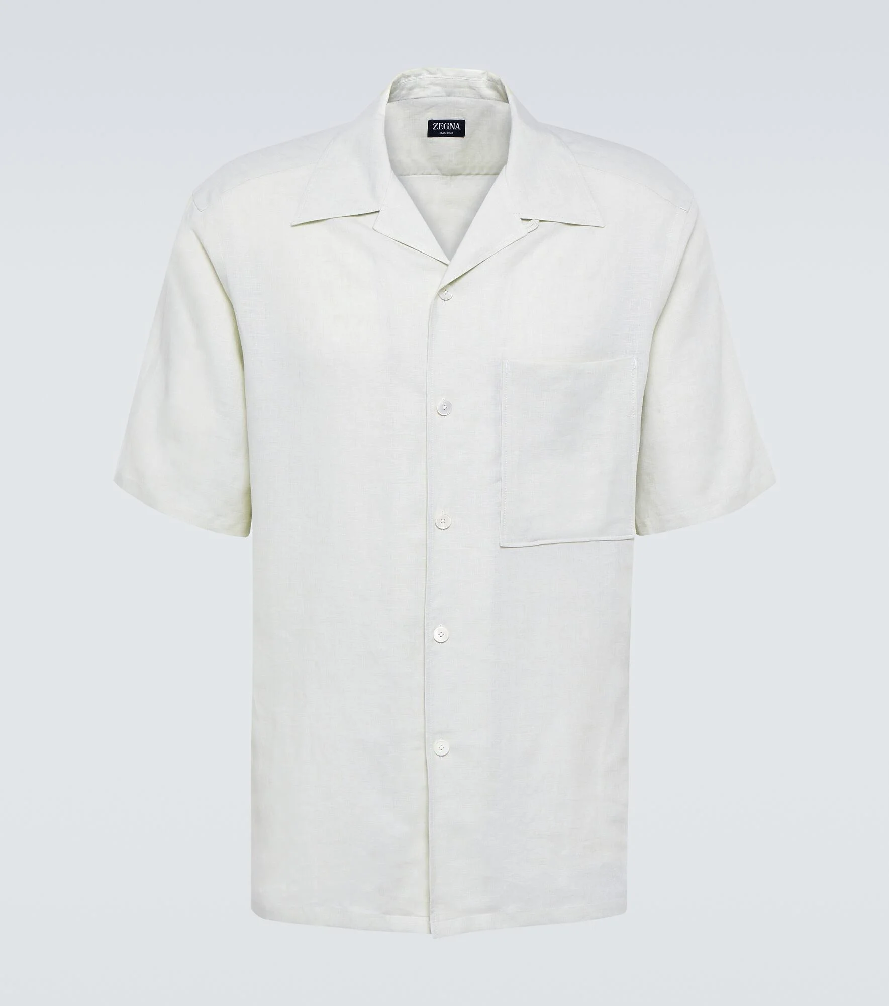 Product Details - Material: 100% linen - Care instructions: machine wash at 30 degrees - Made in Italy - Designer color name: Light Water Green - Closure: buttoned front - Pockets: breast pocket - Collar: Cuban - Item number: P00934022 Size & Fit - True to size - Without pleats in the back - Classic fit - Non-stretchy fabric - Falls below the hip - The model in the picture is 185cm-6'1" and wearing a size M