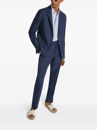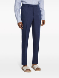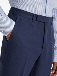 Oasi tapered-leg linen trousers Highlights - Navy blue - Linen/flax - Concealed front fastening - Belt loops - Two side slit pockets - Pressed crease - Two rear button-fastening pockets - Tapered leg Imported Composition Outer: Linen/Flax 100% Washing instructions Dry Clean Only
