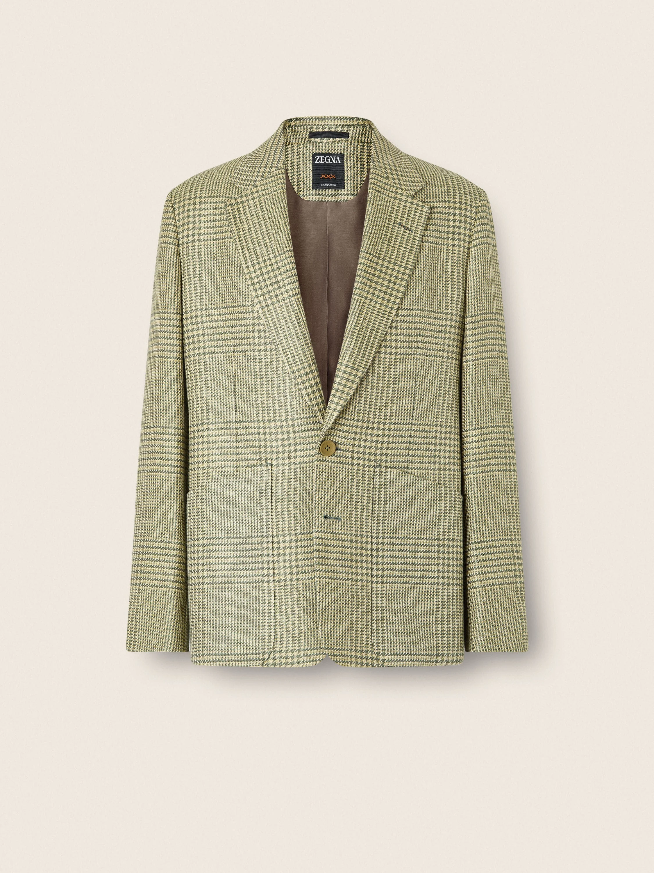 This olive green jacket exudes effortless elegance in ZEGNA's linen-wool-silk Crossover fabric. INFO Crafted from a refined blend of linen, wool, and silk, this olive green Crossover jacket made its debut on the ZEGNA Fashion Show runway. A classic Prince of Wales check lends it a sense of timeless elegance, while a washed finish, relaxed leisure fit, and slanted patch pockets stay true to the Brand’s evolving vision of fine tailoring. PRODUCT CODE 387099A3-1G3AH0 MATERIALS AND CARE 74% Linen; 24% Wool; 2% Mulberry Silk Do not wash. Do not bleach. Do not tumble dry. Iron at max 110°C. Professional dry cleaning in tetrachloroethene and hydrocarbons, mild process. FIT AND PRODUCT DETAILS • Leisure fit • Tailoring jacket • Single vent • Notch lapels • Washed fabric • Prince of Wales pattern • Two button closure • Slanted patch pockets • Deconstructed, fused • Lined • 78 cm length on size 48