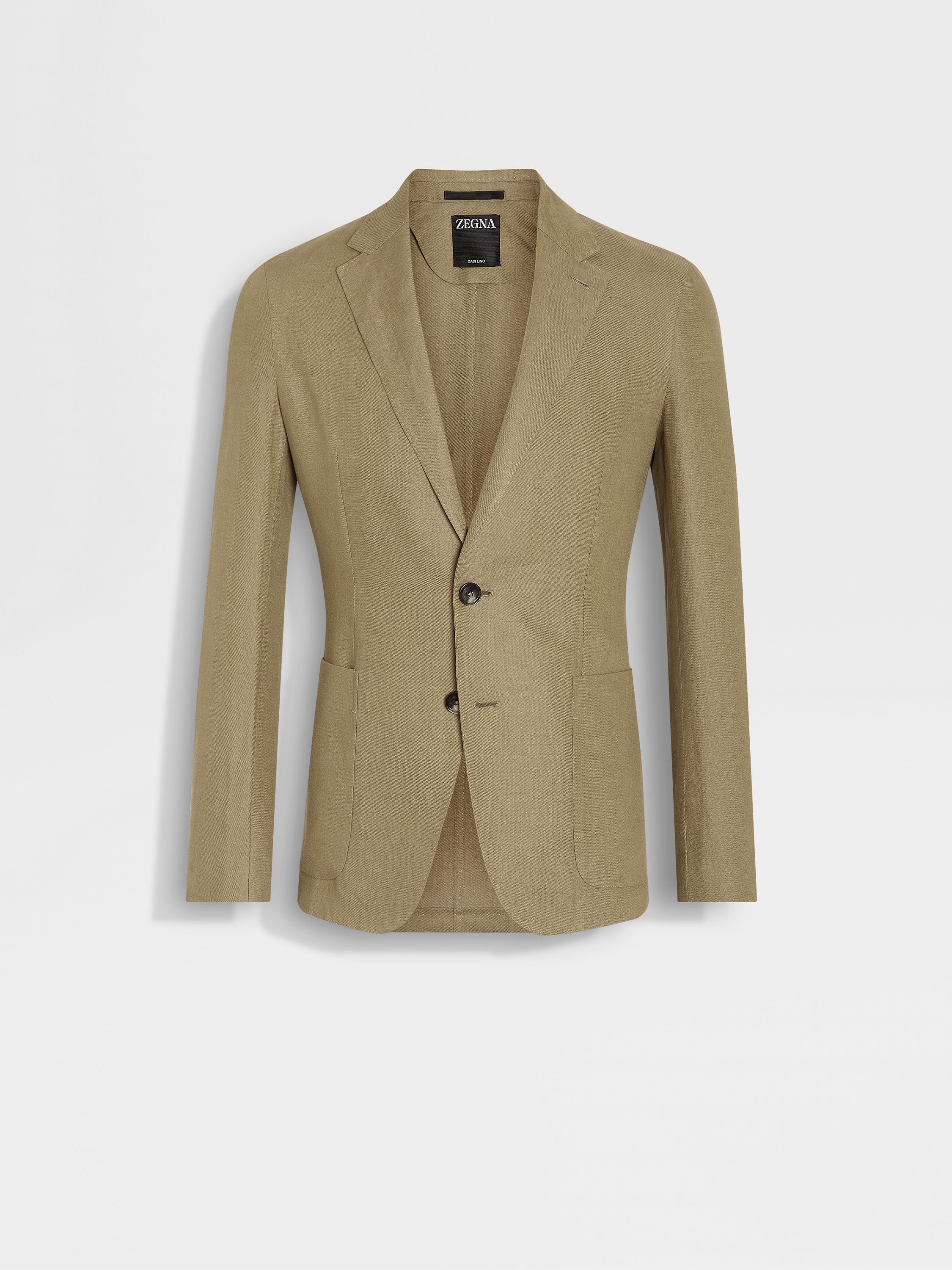 The olive green Oasi Lino tailoring shirt jacket's exclusive material reflects Zegna's commitment to sustainability and traceability. INFO Woven from specially sourced, 100% European-grown flax fibers, the olive green Oasi Lino shirt jacket is both chic and breezy. Pure linen's distinctive, natural texture gives the tailoring shirt jacket a timeless air. It is styled with a slim fit and patch pockets. PRODUCT CODE 773530A7-1DJSS0 MATERIALS AND CARE 100% Linen The inspiration behind this Oasi Lino garment was Born in Oasi Zegna, our 100km² natural territory and the home of our values. Crafted exclusively from European-grown flax fibres that are certified as 100% traceable by 2024, Oasi Lino follows in the footsteps of our founder, who envisioned a vertically integrated system of producing textiles. Do not wash. Do not bleach. Do not tumble dry. Iron at max 110°C. Professional dry cleaning in tetrachloroethene and hydrocarbons, mild process. FIT AND PRODUCT DETAILS • Slim fit • Tailoring jacket • Double vents • Notch lapels • Button closure • Patch pockets • Deconstructed, fused • Unlined • 72.5 cm length on size 48 • Model is 188 cm tall (6.2 feet) and wears an Italian size 48.