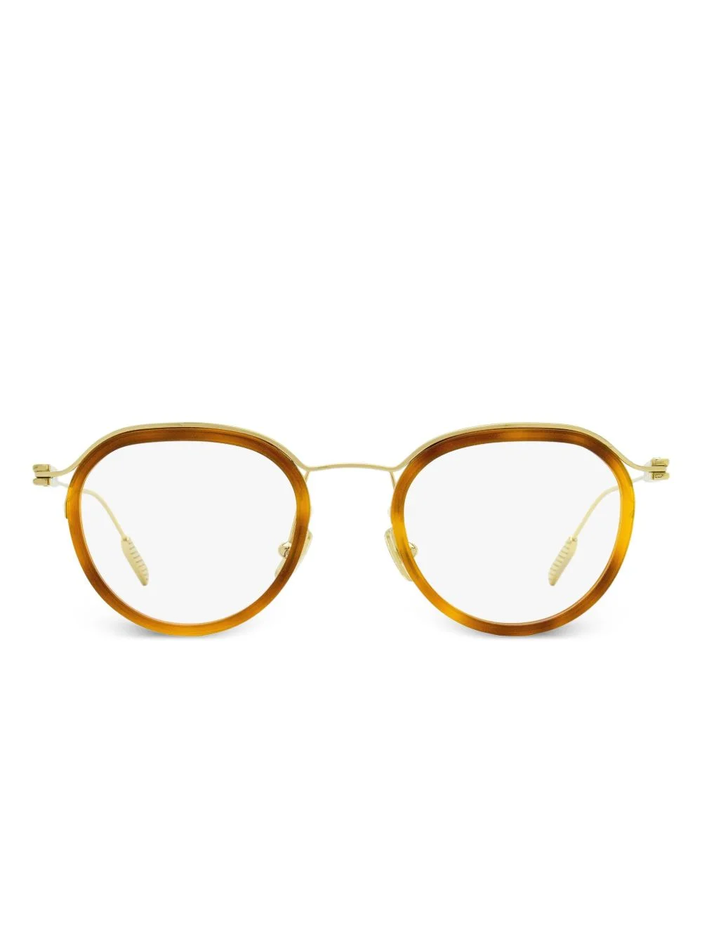 oval frame glasses Highlights - Blonde havana - Oval lens surrounds - Metal frame - Adjustable nose pads - Engraved anti-slip texture - These glasses come with a protective case. - All glasses from farfetch are sold as non-prescription frames. Imported Composition Plastic 100%, Metal 100% SIZE & FIT Measurement Arm Length 5.7 in(14.5 cm) Bridge Width 0.82 in(2.1 cm) Lens Diameter 1.92 in(4.9 cm)