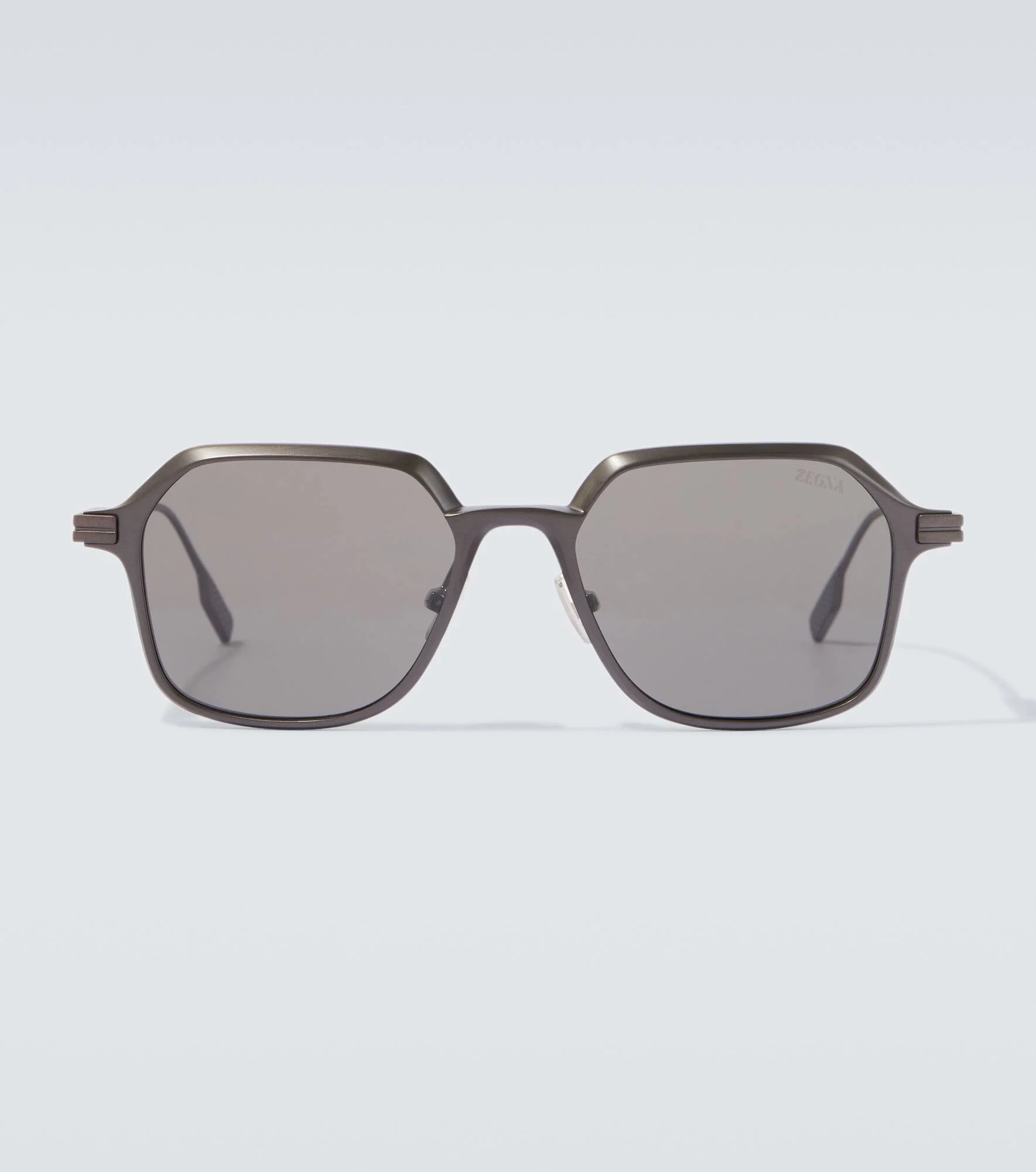 Established with the aim to create the world’s finest fabrics, Zegna is now the go-to brand for luxurious and innovative menswear. These oversized sunglasses are crafted from aluminum and boast square lenses. Product Details - Frame material: metal - Frame color: grey - Lens filter category 3 - Lens color: black - Made in Italy - Includes: cleaning cloth, logo-embossed case, presentation box - The color of the case may vary - Item number: P01038971 Size & Fit - Lens width: 53mm-2.1" - Bridge size: 18mm-0.7" - Earpiece length: 145mm-5.7"