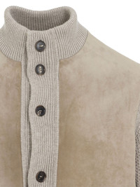 panelled cardigan Highlights - Beige - Panelled design - Button fastening - Ribbed hem - High neck Made in Italy Composition Cashmere 100%, Leather 100% Washing instructions Read Manufacturer Guidelines