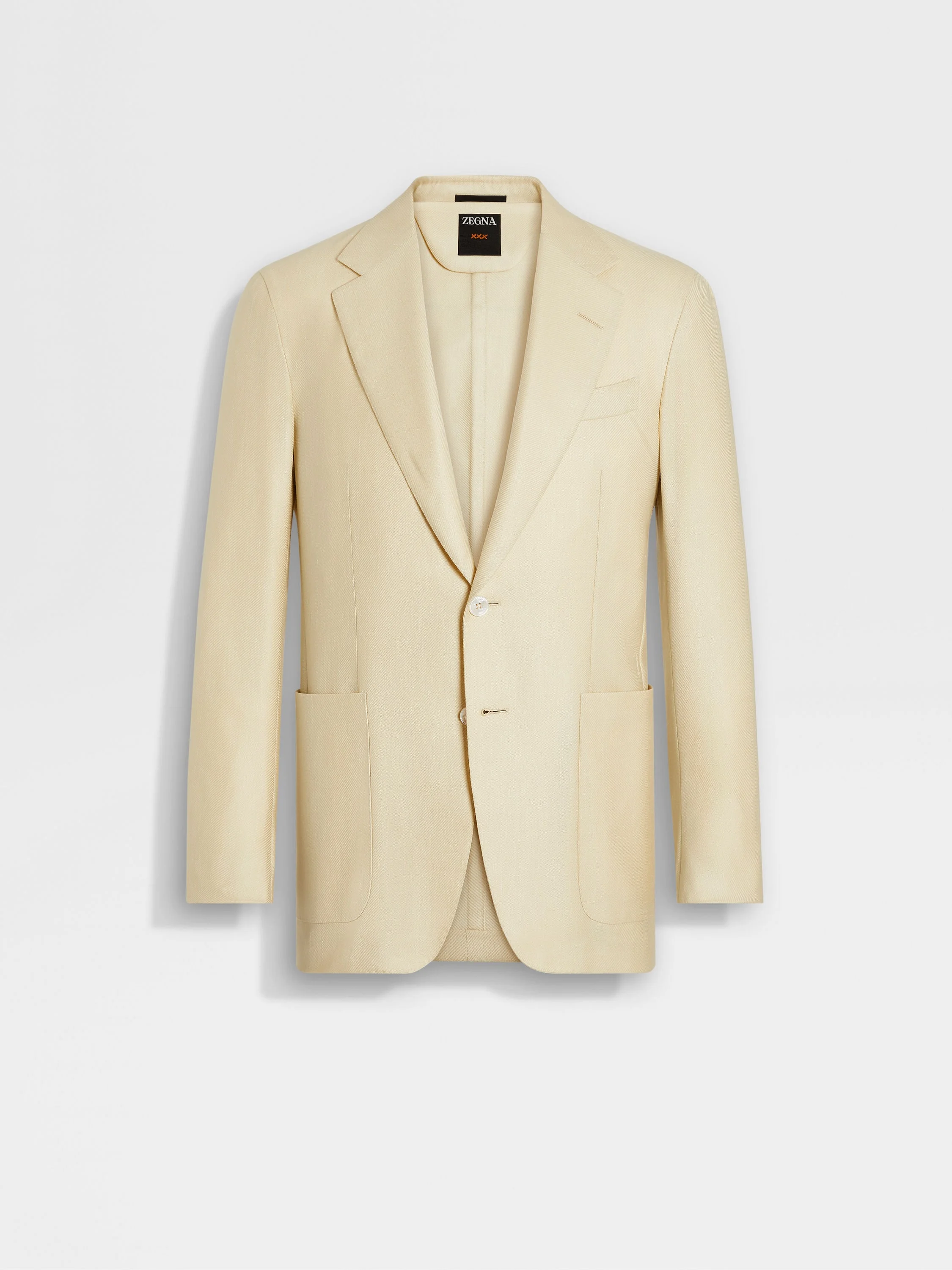 This elegant jacket is made from a refined cashmere-silk-linen blend in charming pastel yellow. INFO The definition of elevated tailoring, this charming pastel yellow jacket is crafted from an exclusive cashmere-silk-linen blend that feels just as sublime as it looks. Left unlined and elevated with timeless sartorial details. PRODUCT CODE 259592A2-10JCN0 MATERIALS AND CARE 64% Cashmere; 23% Mulberry Silk; 13% Linen Do not wash. Do not bleach. Do not tumble dry. Iron at max 110°C. Professional dry cleaning in tetrachloroethene and hydrocarbons, mild process. FIT AND PRODUCT DETAILS • Regular fit • Tailoring jacket • Double vents • Notch lapels • Button closure • Patch pockets • Deconstructed, canvas • Unlined • 75 cm length on size 48