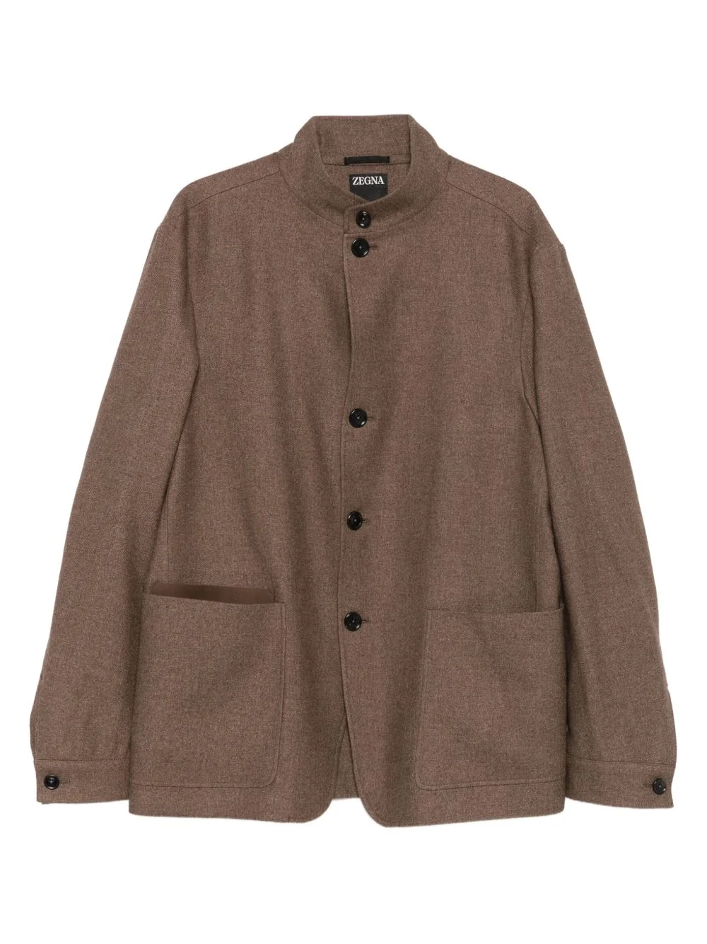 patch-pocket buttoned jacket Highlights - Brown - Patch pockets - Button fastening - Band collar - Long sleeves - Straight hem Imported Composition Cashmere 100%, CALFSKIN 100% Washing instructions Read Manufacturer Guidelines