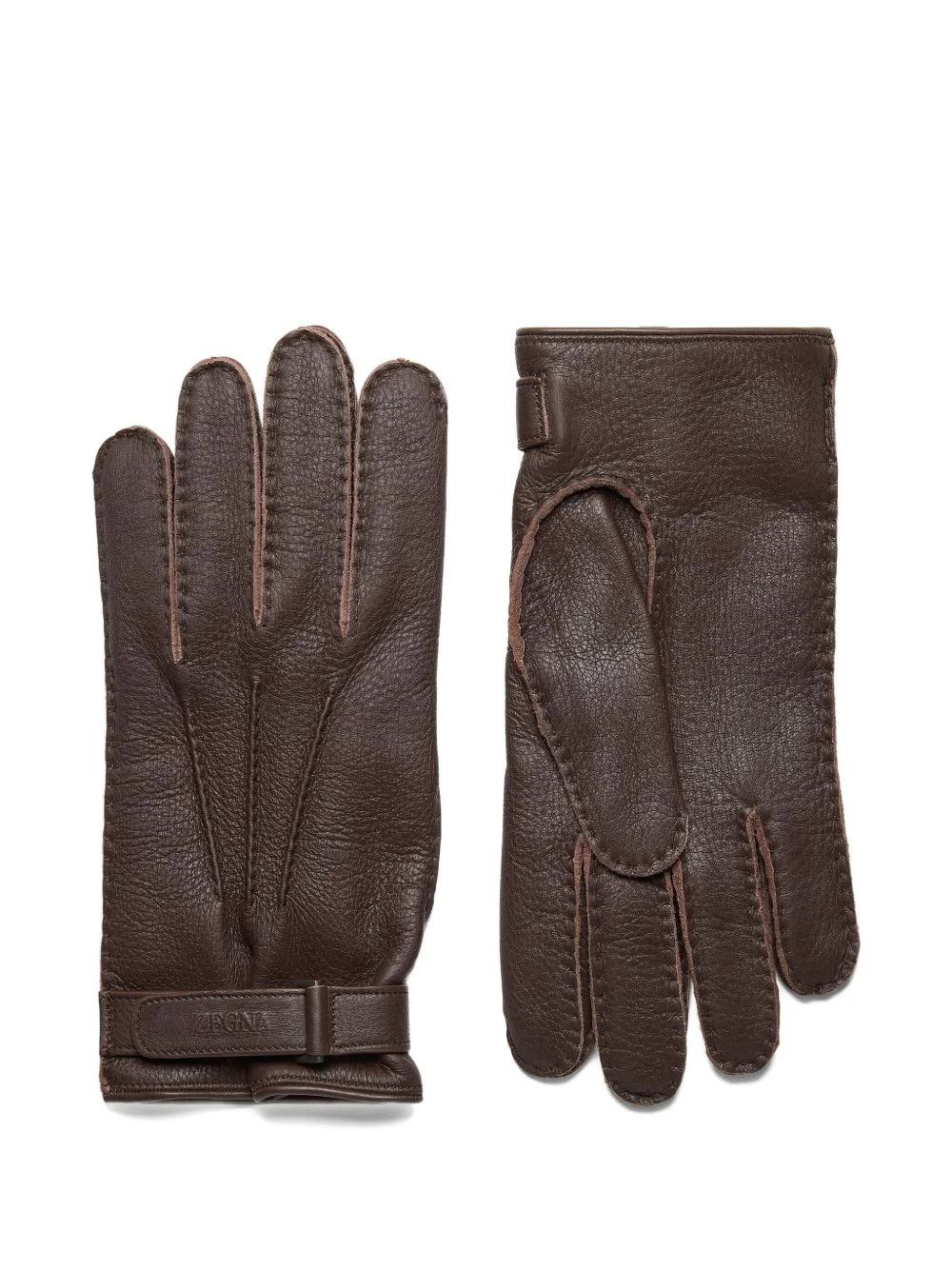 Peccary-leather gloves Highlights - Dark brown - Leather - Strap detail - Logo detail Made in Italy Composition Peccary Leather 100%