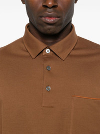 pique polo shirt Highlights - Terracotta brown - Cotton - Pique weave - Front button placket - Polo collar - Leather trim - Chest patch pocket - Long sleeves - Buttoned cuffs - Short side slits - Straight hem Imported Composition Cotton 100%, Calf Leather 100% SIZE & FIT Model measurements Height 6 ft 0 in(1.84 m) Bust/Chest 35.82 in(91 cm) Hips 37 in(94 cm) Waist 28.34 in(72 cm) FittingInformation Designed for a regular fit, this polo shirt offers a comfortable loose fit throughout the body Made from a midweight non-stretch fabric, this piece offers minimal elasticity when worn