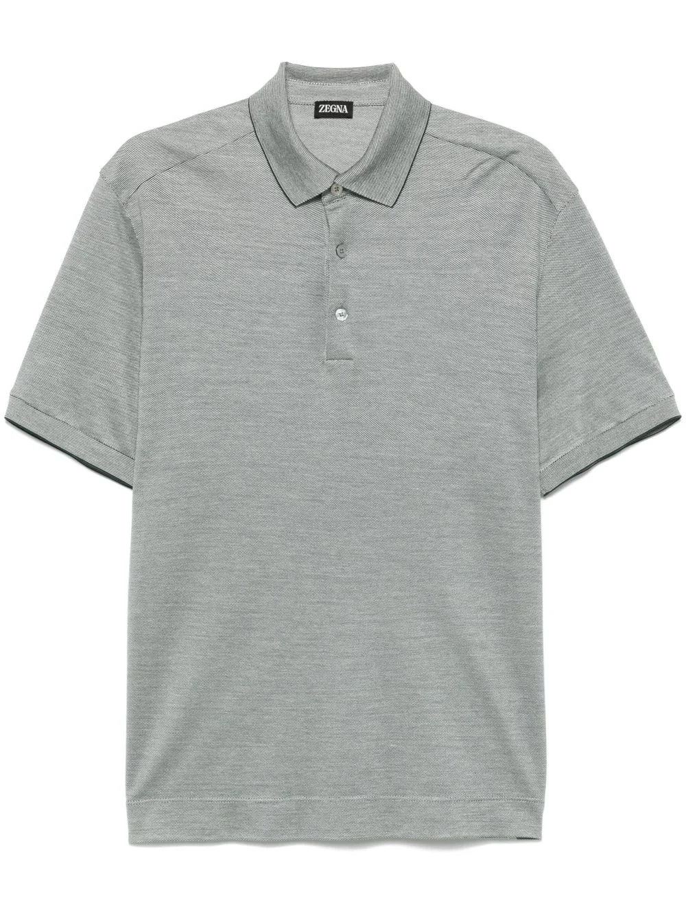 pique polo shirt Highlights - Heather grey - Front button placket - Short sleeves Imported Composition Cotton 52%, Silk 48% SIZE & FIT Model measurements Height 6 ft 2 in(1.87 m) Bust/Chest 37.79 in(96 cm) Hips 37.79 in(96 cm) Waist 30.31 in(77 cm) FittingInformation Designed for a regular fit, this polo shirt offers a comfortable loose fit throughout the body Made from a midweight non-stretch fabric, this piece offers minimal elasticity when worn Washing instructions Hand Wash