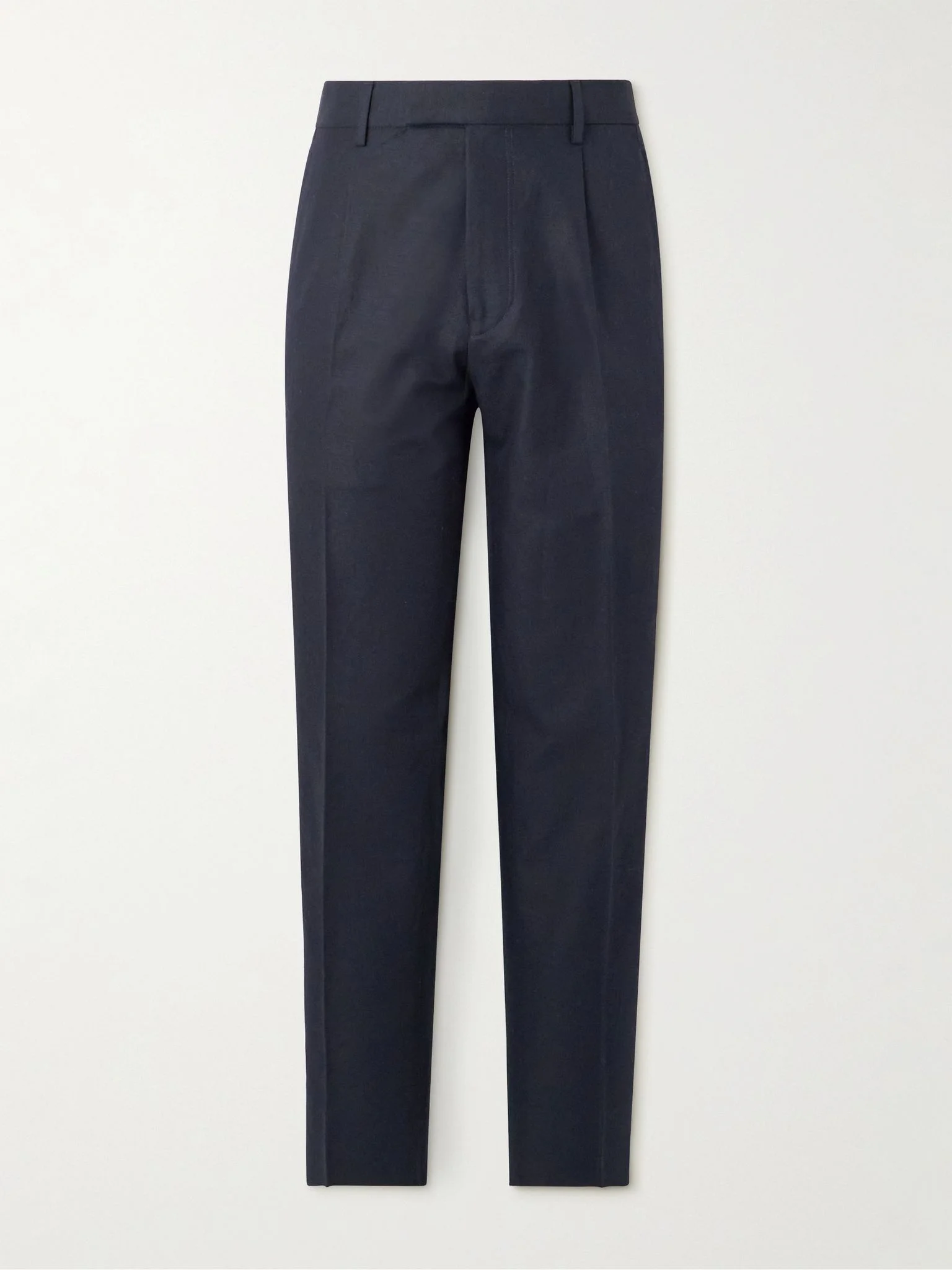Tapered Pleated Cotton and Linen-Blend Twill Trousers Blue