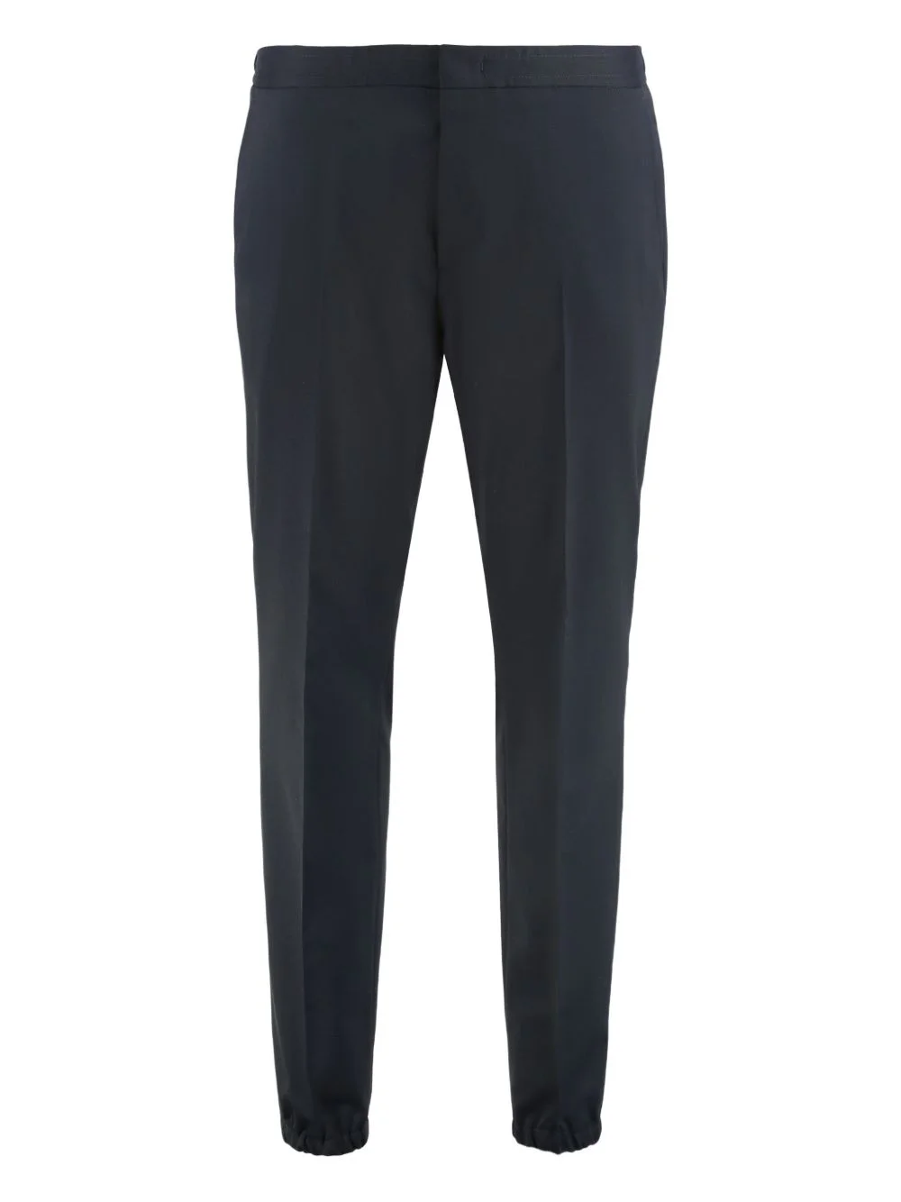pressed-crease trousers Highlights - Dark blue - Rear welt pocket - Elasticated hem Imported Composition Wool 54%, Polyester 45%, Lycra 1% Washing instructions Read Manufacturer Guidelines