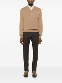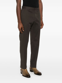pressed-crease trousers Highlights - Dark brown - Cotton blend - Stretch-design - Twill weave - Belt loops - Two diagonal pockets to the sides - Pressed crease - Two rear button-fastening jetted pockets - Concealed front button, hook and zip fastening Imported Composition Cotton 97%, Elastane 3% SIZE & FIT Model measurements Height 6 ft 2 in(1.88 m) Bust/Chest 36.61 in(93 cm) Hips 35.82 in(91 cm) Waist 27.95 in(71 cm) FittingInformation Designed for a tapered leg, offering a loose unrestricted fit over the leg with a closer fit towards the ankle Made from a midweight stretch fabric, this piece offers elasticity and flexibility when worn This piece fits true to size – take your usual size