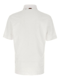 pique satin-piping polo shirt Highlights - White - Pique cotton - Satin piping pocket - Short sleeves - Side slits - Button fastening Imported Composition Cotton 100% Washing instructions Read Manufacturer Guidelines