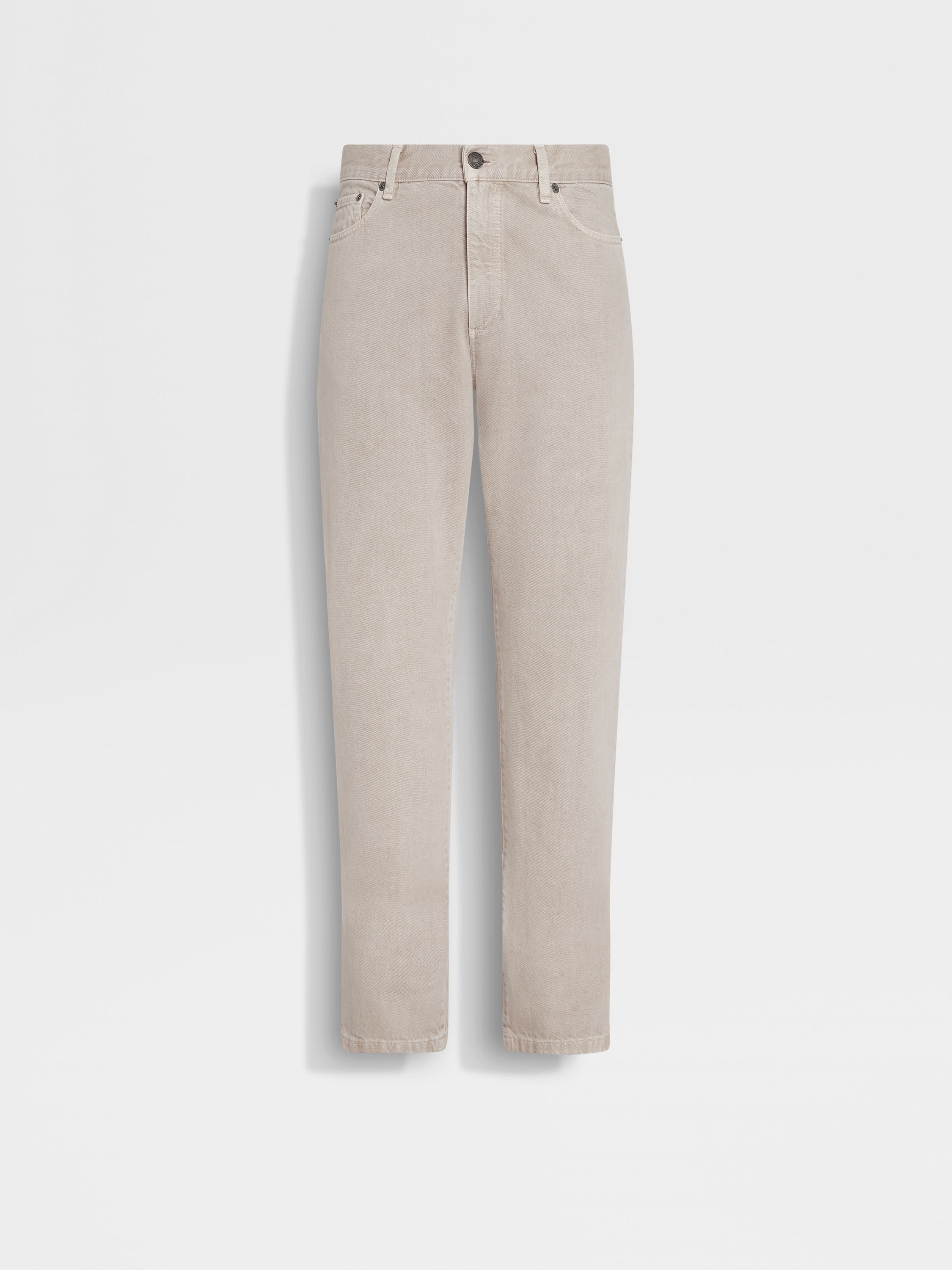 These stone-washed cotton Roccia jeans stand out with a light taupe marble finish. INFO Choose elevated casual style in these pure cotton Roccia jeans, enriched with a light stone-washed finish and a light taupe marble effect. Designed with a streamlined slim-leg cut. ROCCIA ('rɔt:ʃa) — ITALIAN FOR 'ROCK' The inspiration for the Roccia Trousers was Born in Oasi Zegna — the home of our values in the Italian Alps. Inspired by classic workwear, they're both hardwearing and elegant, making them a reliable foundation to any look. PRODUCT CODE UFIB9A9-CITY-N02 MATERIALS AND CARE Main body: 100% Cotton Lining: 100% Cotton Max washing temp 30°C, mild process. Do not bleach. Do not tumble dry. Line drying in the shade. Iron at max 110°C. Do not dry clean. Wash separately. Wash inside out. FIT AND PRODUCT DETAILS • Slim fit • 18 cm narrow hem • Zip and button closure • 5-pockets style • Light stone wash and marble effect denim • Denim weight: 11 ounces