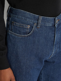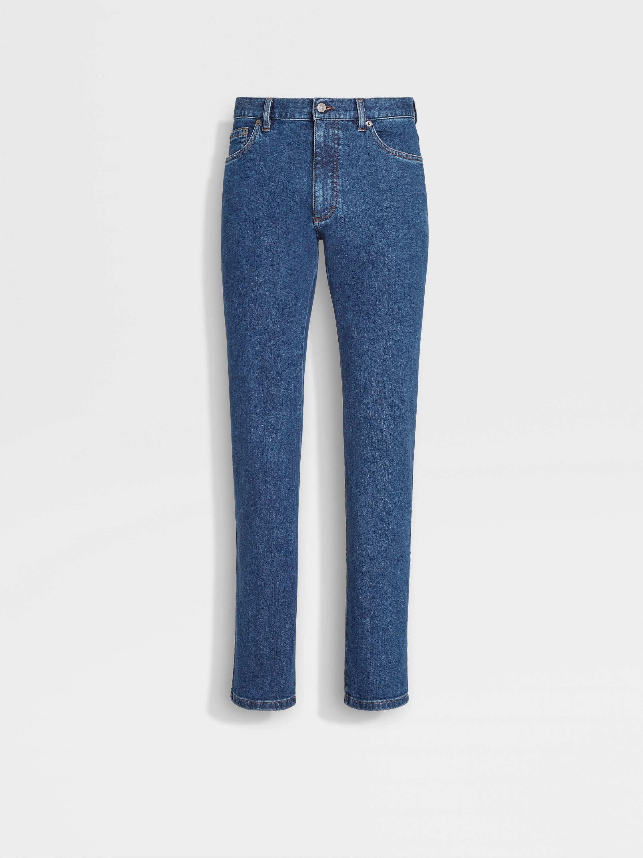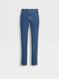 The blue stone-washed stretch cotton Roccia jeans are styled with a contemporary, slim fit. INFO Enhanced with a touch of stretch for added comfort, the blue stone-washed stretch cotton Roccia jeans move with you throughout the day. The rugged wash offers the perfect base for casual looks, while the slim fit creates a long, lean silhouette. The inspiration for the Roccia Jeans, Roccia the Italian word for 'Rock', was Born in Oasi Zegna — the home of our values in the Italian Alps. Inspired by classic workwear, they're both hardwearing and elegant, making them a reliable foundation to any look. PRODUCT CODE E8I70-GAN-001 MATERIALS AND CARE Main body: 98% Cotton; 2% Elastane Lining: 65% Polyester; 35% Cotton Max washing temp 30°C, mild process. Do not bleach. Do not tumble dry. Line drying in the shade. Iron at max 110°C. Do not dry clean. Wash separately. Wash inside out. FIT AND PRODUCT DETAILS • Straight fit • 19 cm regular hem • Button closure • 5-pocket style • Stone wash • Denim weight: 9.5 ounces • Model is 187 cm tall (6.1 feet) and wears a UK size 32.