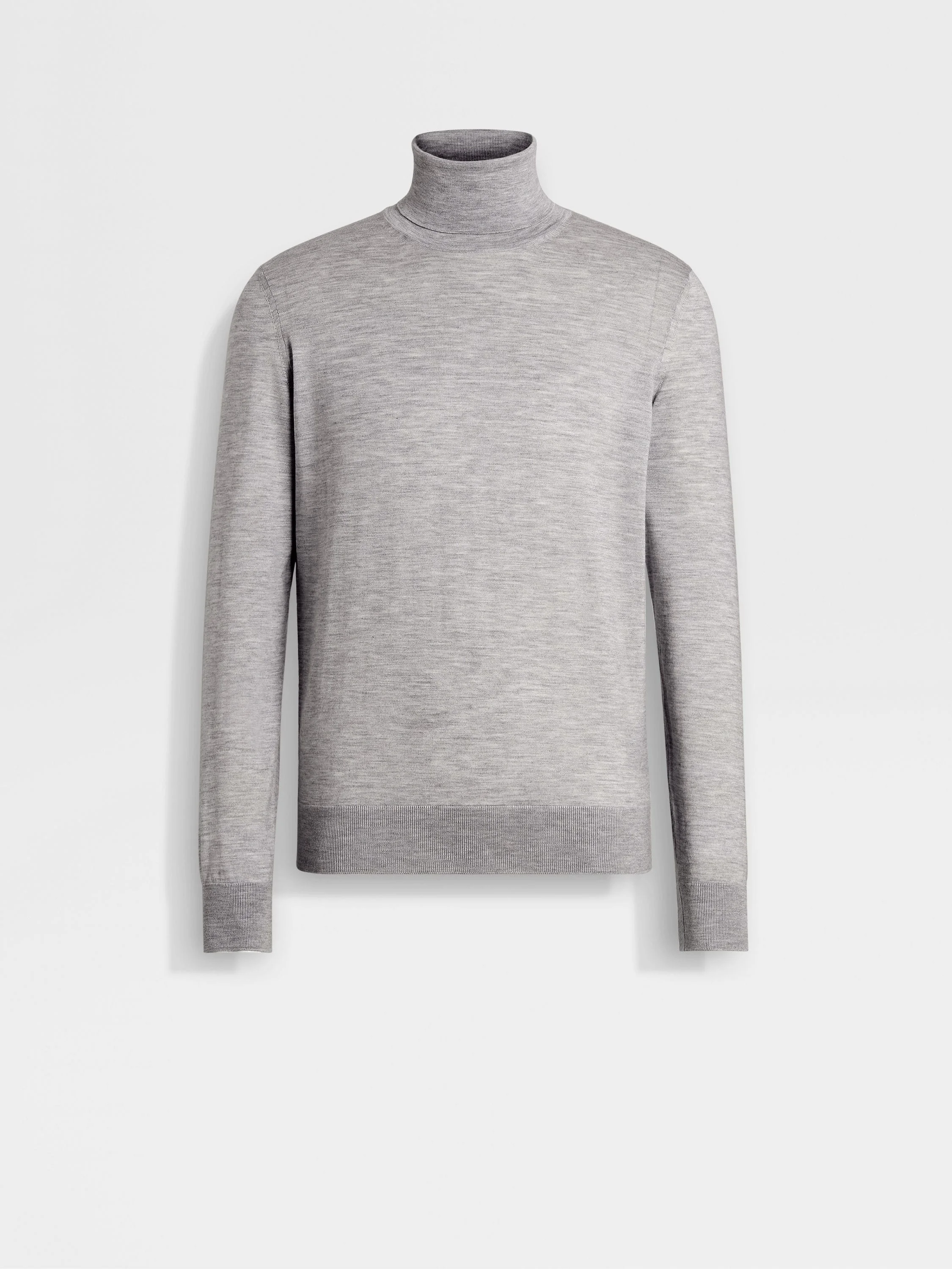 The light grey melange Cashseta turtleneck brings together the best of cashmere and silk. INFO Zegna's refined blend of luxury fibers lends the light grey melange Cashseta turtleneck its distinctive finish. This special material is yarn-dyed, creating subtle variations in each garment. A staple of sophisticated wardrobes, the turtleneck creates a sleek silhouette. PRODUCT CODE UEJ00A8-120-K91 MATERIALS AND CARE 70% Cashmere; 30% Mulberry Silk This sophisticated fabric combines the softness of cashmere with the smooth finish of fine silk. The yarns of Cashseta are dyed before the fabric is created, resulting in a melange that is unique to each garment. Wash by hand. Do not bleach. Do not tumble dry. Flat drying. Iron at max 110°C. Professional dry cleaning in hydrocarbons, mild process. Wash and iron inside out. FIT AND PRODUCT DETAILS • 18 gauge • Ribbed turtleneck collar • Long sleeves • Ribbed trims