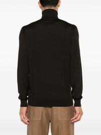 THIS CEDAR BROWN ROLL-NECK SWEATER IS MADE OF A LUXURIOUS CASHMERE-SILK BLEND. THE RIBBED KNIT DESIGN ADDS TEXTURE AND WARMTH, WHILE THE LONG SLEEVES AND STRAIGHT HEM PROVIDE A CLASSIC AND VERSATILE STYLE. STAY COZY AND STYLISH WITH THIS TIMELESS PIECE.