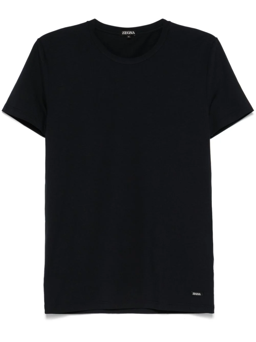 round-neck T-shirt Highlights - Navy blue - Short sleeves - Logo patch to the front Made in Italy Composition Modal 65%, Lyocell 25%, Elastane 10% SIZE & FIT Model measurements Height 6 ft 2 in(1.88 m) Bust/Chest 36.61 in(93 cm) Hips 36.61 in(93 cm) Waist 29.92 in(76 cm) FittingInformation Designed for a slim fit, offering a comfortable fit that sits just away from the body The narrow-cut sleeves offer a close fit at the arms Made from a midweight stretch fabric, this piece offers elasticity and flexibility when worn