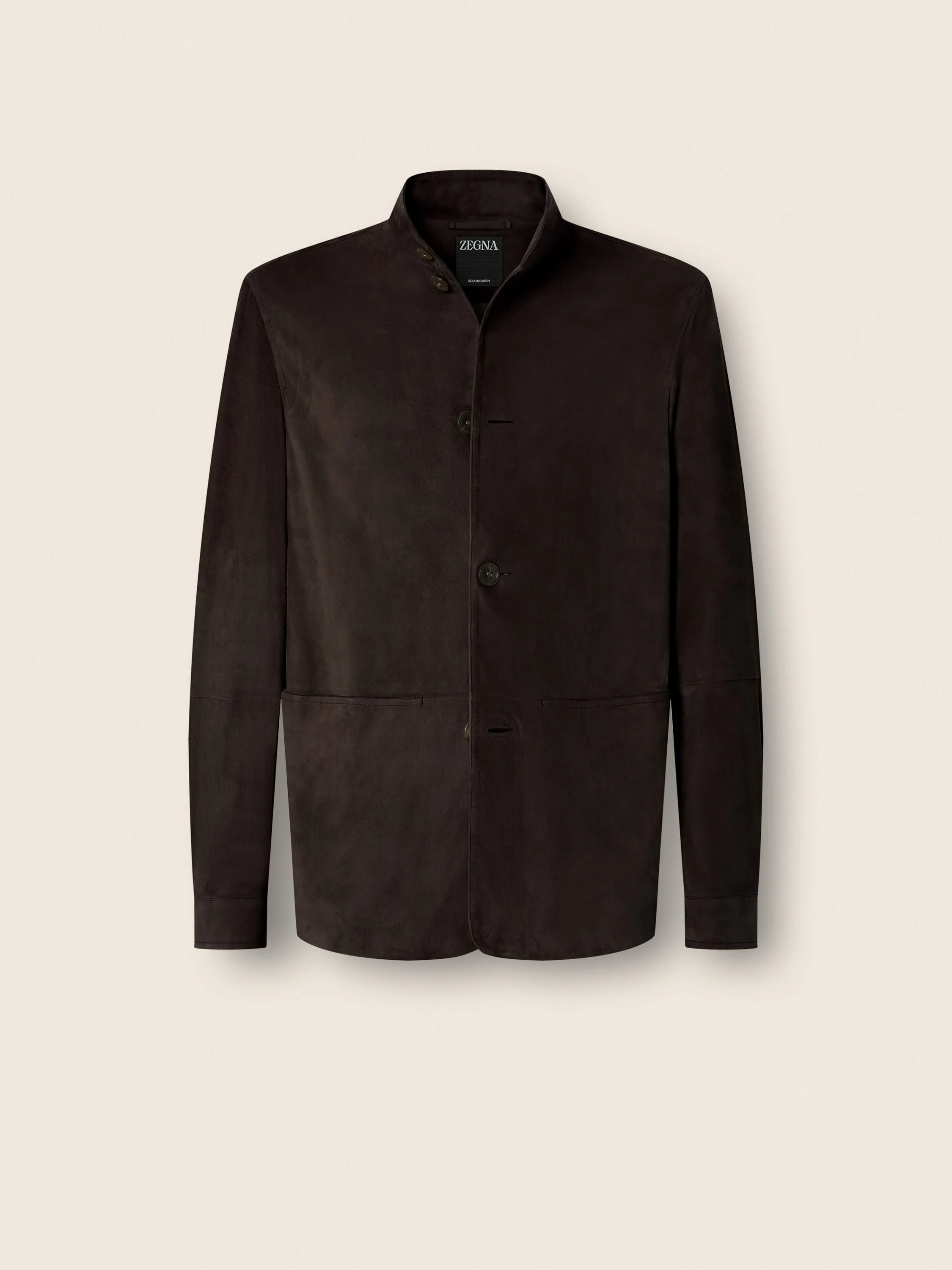 Discover the unmatched charm of our Il Conte chore jacket, reimagined in dark brown SECONDSKIN leather. INFO A straight hem, shirt cuffs, stand collar and horizontal pockets give this take on ZEGNA's iconic Il Conte chore jacket its impeccably sleek allure. Crafted from exceptionally supple SECONDSKIN leather in earthy Corteccia Oasi. Corteccia Oasi (ˈkorˈtɛtt͡ʃa) – ITALIAN FOR 'BARK', this is the color of tree bark and of the earth in Oasi Zegna, reimagined by our Founder. The tone is identified as dark, earthy brown. Il Conte jacket pays homage to our Founder, Ermenegildo Zegna. He was bestowed with the noble title of Count of Monte Rubello in the 1930s by King Vittorio Emanuele III of Italy for the legacy he created as an entrepreneur, philanthropist, and businessman. PRODUCT CODE UHPSCA3-H290-M09 MATERIALS AND CARE Ovine Leather SECONDSKIN is crafted by tanneries selected for their renowned expertise. Fine, supple and incredibly soft to the touch, it moulds to your proportions over time, offering impeccable comfort with each wear. Do not wash. Do not bleach. Do not tumble dry. Iron at max 110°C. Professional dry cleaning in hydrocarbons, mild process. Protect the metal accessories during washing. Protect leather details before washing. Professional leather clean only. FIT AND PRODUCT DETAILS • Regular fit • Stand collar • Button closure • Straight hem • Shirt cuffs • Horizontal lower pockets • 74 cm length on size 48