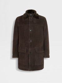 This dark brown shearling coat provides warmth and elegance in equal measure. INFO This refined coat combines the engulfing warmth of dark brown shearling with the enduring elegance of a classic button-up silhouette. A back vent and patch pockets complete the design with a hint of ZEGNA's sartorial finesse. PRODUCT CODE UGPMSA2-G366P-M09 MATERIALS AND CARE Shearling Do not wash. Do not bleach. Do not tumble dry. Iron at max 110°C. Professional dry cleaning in hydrocarbons, mild process. Protect the metal accessories during washing. Professional leather clean only. Use press cloth. FIT AND PRODUCT DETAILS • Regular fit • Single vent • Shirt collar with wool on the outer side • Button closure • Straight hem • Regular cuffs • Collar tab • Lower flap patch pockets • 88 cm length on size 48