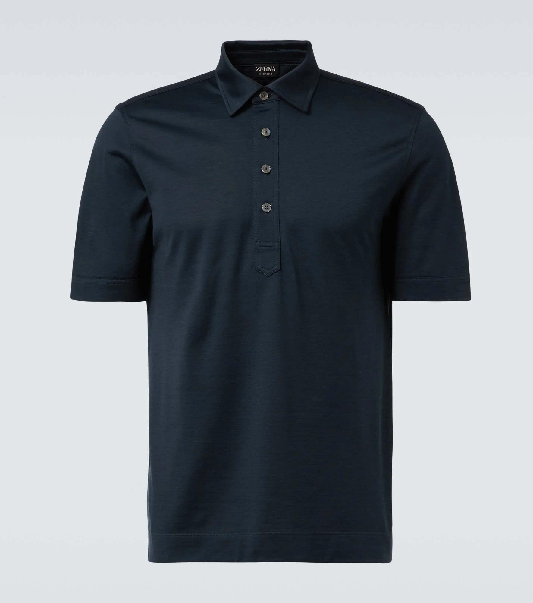 Established with the aim to create the world’s finest fabrics, Zegna is now the go-to brand for luxurious and innovative menswear. This short-sleeved polo shirt is made from silk and cotton. Product Details - Material: 50% cotton, 50% silk - Care instructions: dry clean - Made in Turkey - Designer color name: Fondale - Item color: navy - Contains non-textile parts of animal origin - Closure: half-buttoned front - Item number: P01021852 Size & Fit - True to size - Straight fit - Slightly stretchy fabric - Falls to the hip - Height of model is 188cm-74" and wears a size IT 50