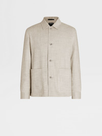 The off white silk and linen blend Alpe chore jacket has a textured knit. INFO Enhanced with a honeycomb pattern, the off white silk and linen blend Alpe chore jacket's lightweight and breathable fabric is ideal for warmer weather. The Alpe tailoring chore jacket features a shirt collar and a full button closure. Large patch pockets on the front set the look apart. The inspiration for the Alpe Chore Jacket, Alpe the Italian word for 'Meadow', was Born in Oasi Zegna — the home of our values in the Italian Alps. A modern take on a versatile blazer, wear it for a stylish note whatever the occasion. Customize this item with our Made to Measure Service. For more information, please contact our Customer Care or visit your nearest stores. PRODUCT CODE 549C00A5-1DHAQ0 MATERIALS AND CARE 35% Tussah Silk; 35% Linen; 19% Wool; 10% Polyamide; 1% Elastane Do not wash. Do not bleach. Do not tumble dry. Iron at max 110°C. Professional dry cleaning in tetrachloroethene and hydrocarbons, mild process. FIT AND PRODUCT DETAILS • Regular fit • Tailoring chore jacket • Double vents • Shirt collar • Button closure • Patch pockets • Honeycomb-texture fabric • Deconstructed, fused • Unlined • 72 cm length on size 48 • Model is 185 cm tall (6.0 feet) and wears an Italian size 48.