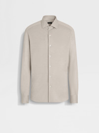 This silk-linen shirt brings fresh charm to any outfit with its light taupe melange colorway. INFO A refined blend of silk and linen: this shirt is luxury leisurewear at its finest. Presented in a charming light taupe melange colorway, it's styled with standard cuffs and a versatile rounded hem. PRODUCT CODE UFX46A9-SRO1-N92 MATERIALS AND CARE 43% Mulberry Silk; 32% Linen; 25% Cotton Do not wash. Do not bleach. Do not tumble dry. Iron at max 110°C. Professional dry cleaning in tetrachloroethene and hydrocarbons, mild process. FIT AND PRODUCT DETAILS • Regular fit • One-piece collar • Standard cuffs • Button closure • Rounded hem • 79 cm length on size 39
