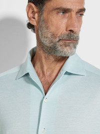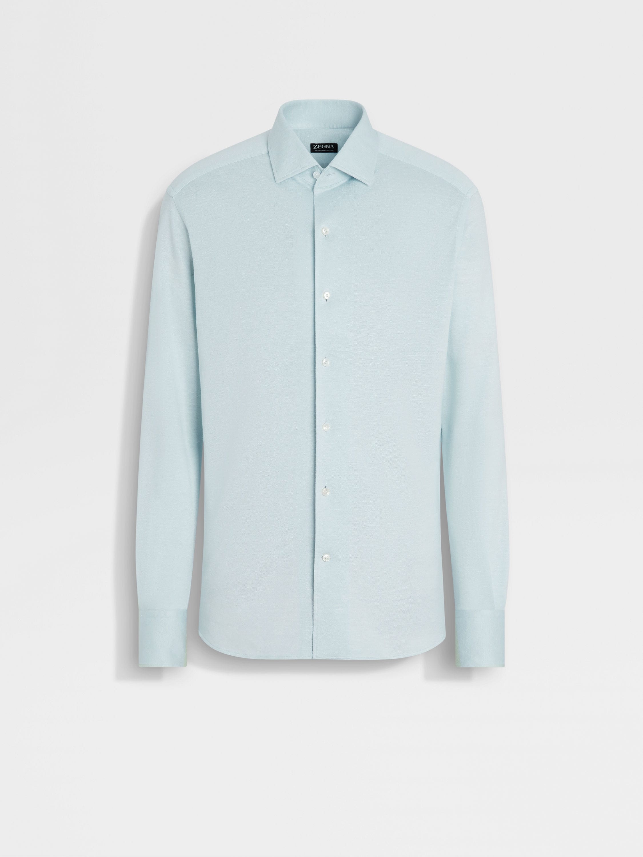 This silk-linen shirt brings fresh charm to any outfit with its light blue melange colorway. INFO A refined blend of silk and linen: this shirt is luxury leisurewear at its finest. Presented in a charming light blue melange colorway, it's styled with standard cuffs and a versatile rounded hem. PRODUCT CODE UFX46A9-SRO1-A01 MATERIALS AND CARE 43% Mulberry Silk; 32% Linen; 25% Cotton Do not wash. Do not bleach. Do not tumble dry. Iron at max 110°C. Professional dry cleaning in tetrachloroethene and hydrocarbons, mild process. FIT AND PRODUCT DETAILS • Regular fit • One-piece collar • Standard cuffs • Button closure • Rounded hem • 79 cm length on size 39