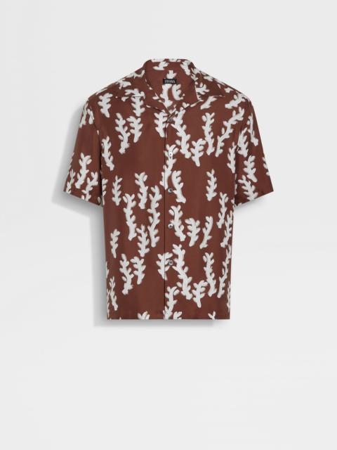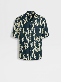 This dark teal blue and light yellow mulberry silk shirt showcases the modern charm of Zegna's Oasi print. INFO Embrace the refined elegance of mulberry silk with this short-sleeved shirt. Zegna's distinctive Oasi print in dark teal blue and light yellow brings its relaxed silhouette to life, styled with a Cuban collar and straight hem. PRODUCT CODE UFX49A9-SCP5-013 MATERIALS AND CARE 100% Mulberry Silk Do not wash. Do not bleach. Do not tumble dry. Iron at max 110° C. Professional dry cleaning in tetrachloroethene and hydrocarbons, mild process. FIT AND PRODUCT DETAILS • Regular fit • Cuban collar • Button closure • Straight hem • Oasi print • 71 cm length on size 39
