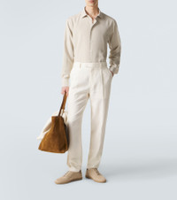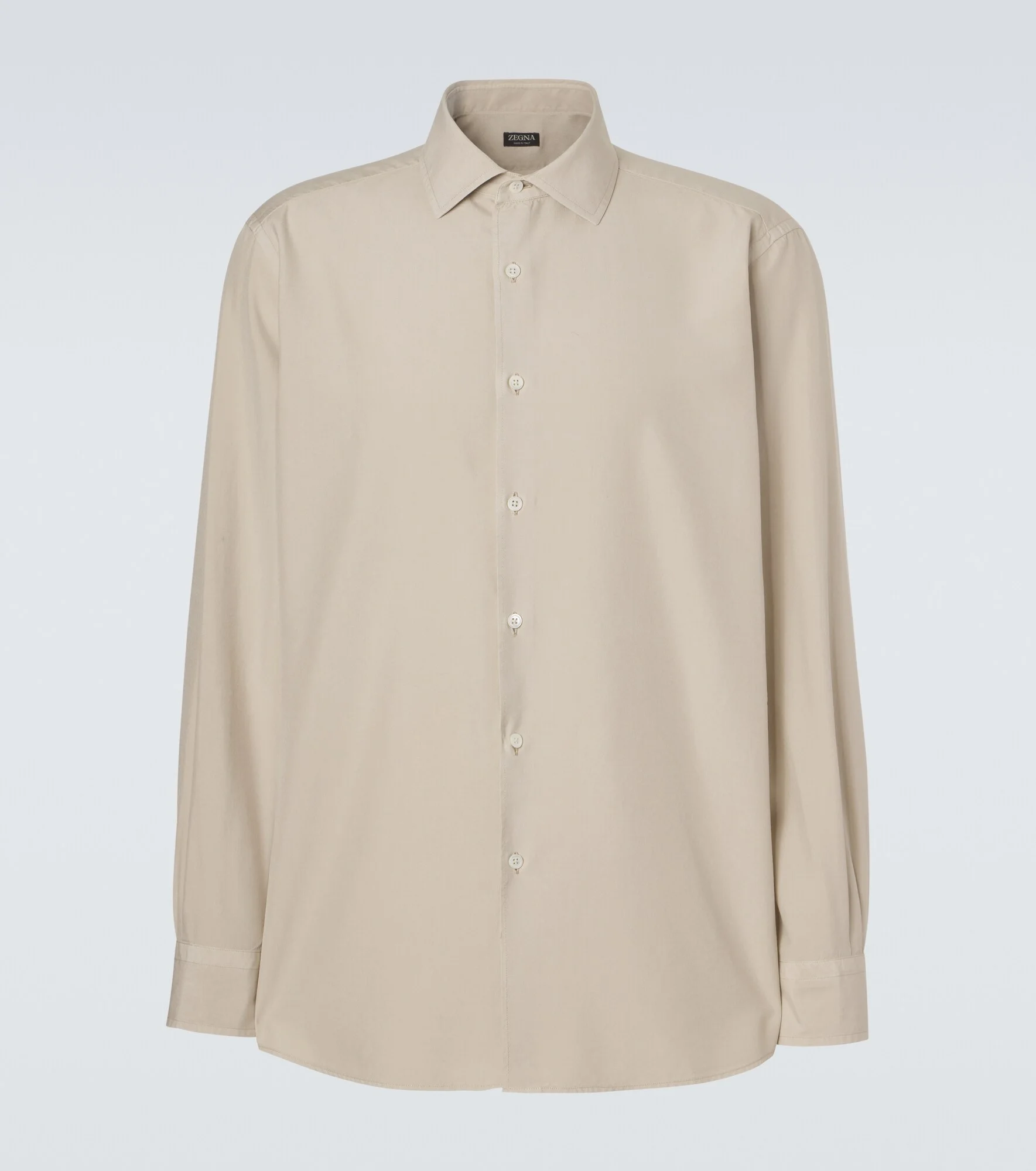 Zegna has established itself as a go-to brand for the world’s finest fabrics, as shown on this shirt. Cut from pure mulberry silk, this white shirt drapes beautifully into a relaxed silhouette with a semi-spread collar and a rounded hem. Product Details - Material: 100% silk - Care instructions: dry clean - Made in Italy - Color: white - Designer color name: Ivory - Contains non-textile parts of animal origin - Collar: classic (Straight point) - Closure: buttoned front - Cuff: buttoned - Item number: P01137317 Size & Fit - True to size - Without pleats in the back - Straight fit - Non-stretchy fabric - Falls below the hip - The model in the picture is 185cm-6'1" and wearing a size L