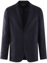 single breasted blazer Highlights - Navy blue - Button fastening - Chest welt pocket - Two side patch pockets Made in Italy Composition Lining: Viscose 100% Outer: Linen/Flax 58%, Wool 42%