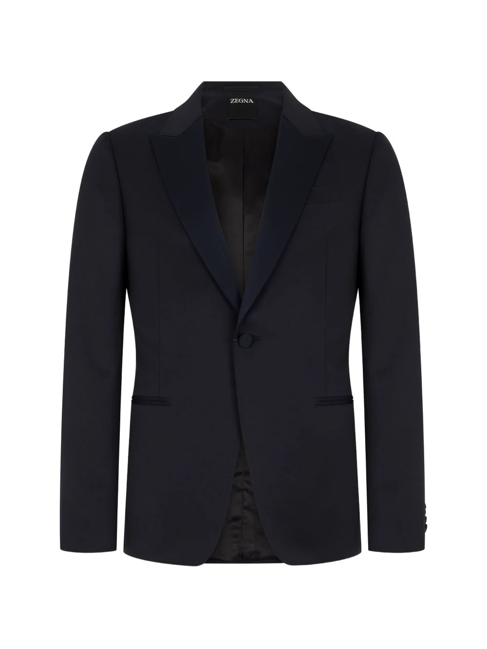 single-breasted blazer Highlights - Navy blue - Peak lapel - Single-button fastening - Front welt pockets - Buttoned cuffs - Tailored fit Imported Composition Fabric 100% Washing instructions Read Manufacturer Guidelines