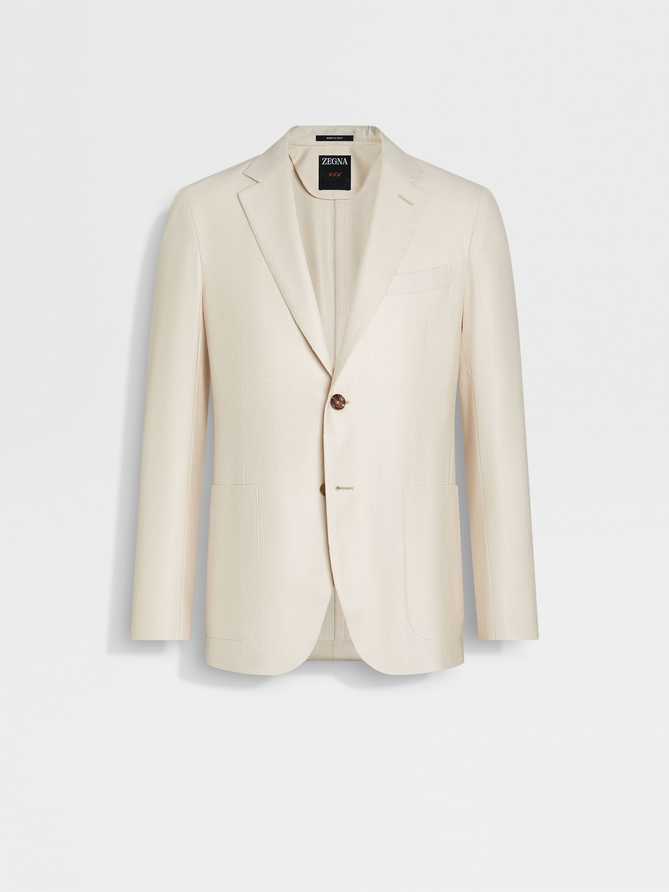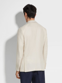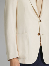 The off white cashmere, silk, and linen cardigan jacket showcases the beautiful qualities of luxurious natural materials. INFO Soft and lightweight, the off white cashmere, silk, and linen cardigan jacket is ideal for formal occasions. The elegant cardigan jacket is presented in a versatile, neutral colorway. It is unlined and styled with notch lapels and patch pockets. PRODUCT CODE 860N33A8-10JCN0 MATERIALS AND CARE 64% Cashmere; 23% Mulberry Silk; 13% Linen Do not wash. Do not bleach. Do not tumble dry. Iron at max 110°C. Professional dry cleaning in tetrachloroethene and hydrocarbons, mild process. FIT AND PRODUCT DETAILS • Regular fit • Tailoring cardigan jacket • Double vents • Notch lapels • Button closure • Patch pockets • Deconstructed, canvas • Unlined • 74 cm length on size 48