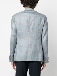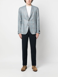 single-breasted blazer Highlights - Blue - Cashmere blend - Logo patch at the sleeve - Notched lapels - Front button fastening - Two front patch pockets - Long sleeves - Buttoned cuffs Made in Italy Composition Outer: Cashmere 42%, Linen/Flax 32%, Silk 26% Lining: Cupro 100% SIZE & FIT Model measurements Height 6 ft 0 in(1.84 m) Bust/Chest 36.22 in(92 cm) Hips 35.43 in(90 cm) Waist 26.77 in(68 cm) FittingInformation Designed for a slim fit, offering a comfortable fit that sits just away from the body The vented hem offers movement at the rear Made from a midweight non-stretch fabric This piece fits true to size – take your usual size Washing instructions Dry Clean Only