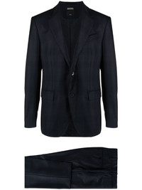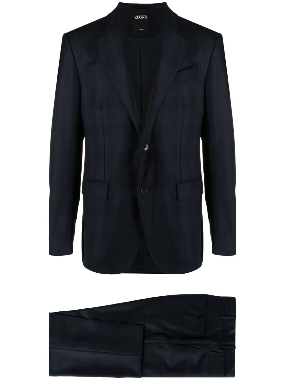 single-breasted checked wool suit Highlights - Navy blue - Wool - Prince of wales check pattern - Jacket: - Notched lapels - Front button fastening - Long sleeves - Buttoned cuffs - Jetted chest pocket - Two front flap pockets - English rear vents - Trousers: - Slim cut - Pressed crease - Belt loops - Off-centre front button fastening and zip fly fastening - Two side inset pockets - Two rear welt pockets Imported Composition Outer: Wool 100% Lining: Cupro 100%, Viscose 100%, Modal 50%, Cotton 50% SIZE & FIT Model measurements Height 6 ft 2 in(1.89 m) Bust/Chest 35.03 in(89 cm) Hips 38.18 in(97 cm) Waist 29.92 in(76 cm) FittingInformation Tailored for a slim fit, offering a comfortable fit that sits just away from the body The unfinished hems allow for the length to be altered Made from a midweight non-stretch fabric, this piece offers minimal elasticity when worn This piece fits true to size – take your usual size Washing instructions Dry Clean Only