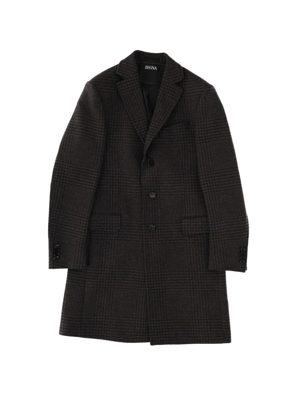 single-breasted coat Highlights - Black - Check pattern - Button fastening - Welt pocket - Buttoned cuffs - Long sleeves Imported Composition Fabric 100% Washing instructions Read Manufacturer Guidelines