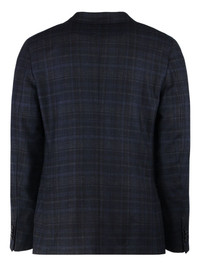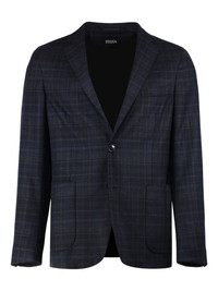 single-breasted notched-lapel blazer Highlights - Dark-blue - Checked pattern - Notched lapels - Two front pockets - Chest pocket - Long sleeves Imported Composition Wool 100% Washing instructions Read Manufacturer Guidelines