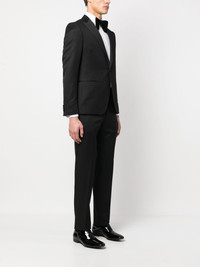 single-breasted suit black cotton-wool blend Suit jacket peak lapels front button fastening long sleeves two side welt pockets chest welt pocket Suit trousers tapered leg slim cut two side slit pockets two rear button-fastening pockets Imported Composition Outer: Wool 84%, Mohair 16% Lining: Polyester 65%, Acetate 63%, Viscose 37%, Cotton 35% SIZE & FIT Model measurements Height 6 ft 2 in(1.89 m) Bust/Chest 37.4 in(95 cm) Hips 35.03 in(89 cm) Waist 27.95 in(71 cm) FittingInformation This piece fits true to size. We recommend you get your regular size Cut for a slim fit Made with a mid-weight non-stretch fabric Washing instructions Dry Clean Only