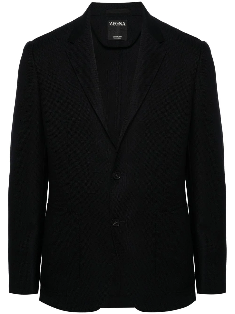 single-breasted wool blazer Highlights - Navy blue - Wool - Textured finish - Notched lapels - Long sleeves - Buttoned cuffs - Two front patch pockets - English rear vents - Unlined - Front button fastening Imported Composition Lining: Polyester 100% Outer: Wool 100% SIZE & FIT Model measurements Height 6 ft 2 in(1.87 m) Bust/Chest 38.18 in(97 cm) Hips 36.61 in(93 cm) Waist 29.13 in(74 cm) FittingInformation Designed for a slim fit, offering a comfortable fit that sits just away from the body The internal shoulder pads offer a structured shape Made from a midweight non-stretch fabric This piece fits true to size – take your usual size