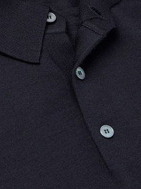 ZEGNA's polo shirt is minimally detailed with a strip of contrasting suede along the chest pocket. Made from soft cotton-pique, it has a slim fit and fastens with a trio of shell buttons. Size & Fit - Fits true to size. Take your normal size - Designed for a slim fit - Slightly long in the sleeves - Lightweight knit - Italian sizing Details & Care - Navy cotton-pique, brown suede - Button fastenings - 100% cotton; trim: 100% suede (Calf) - Machine wash