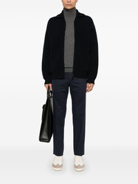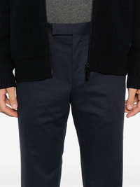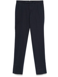 slim trousers Highlights - Navy blue - Cotton blend - Concealed front button, hook and zip fastening - Belt loops - Two diagonal pockets to the sides - Pressed crease - Two rear button-fastening jetted pockets - Slim cut Made in Italy Composition Outer: Cotton 95%, Cashmere 4%, Elastane 1% Lining: Cotton 100% SIZE & FIT Model measurements Height 6 ft 1 in(1.85 m) Bust/Chest 35.82 in(91 cm) Hips 37.79 in(96 cm) Waist 29.13 in(74 cm) FittingInformation Designed for a slim fit, offering a comfortable fit that sits just away from the leg The unfinished hems allow for the length to be altered Made from a midweight stretch fabric, this piece offers elasticity and flexibility when worn