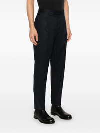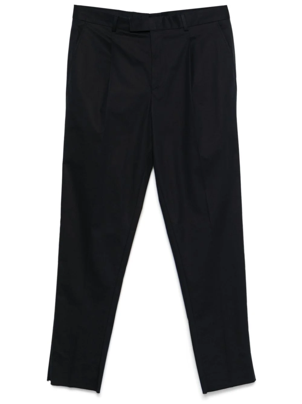 slim trousers Highlights - Black - Cotton blend - Concealed front button, hook and zip fastening - Belt loops - Pleat detailing - Pressed crease - Two diagonal pockets to the sides - Two rear jetted pockets - Slim cut Made in Italy Composition Outer: Cotton 96%, Elastane 4% Lining: Cotton 100% SIZE & FIT Model measurements Height 6 ft 1 in(1.85 m) Bust/Chest 35.82 in(91 cm) Hips 37.79 in(96 cm) Waist 29.13 in(74 cm) FittingInformation Designed for a slim tapered leg, offering a close fit that sits just away from the leg with a closer fit towards the ankle The unfinished hems allow for the length to be altered Made from a midweight stretch fabric, this piece offers elasticity and flexibility when worn