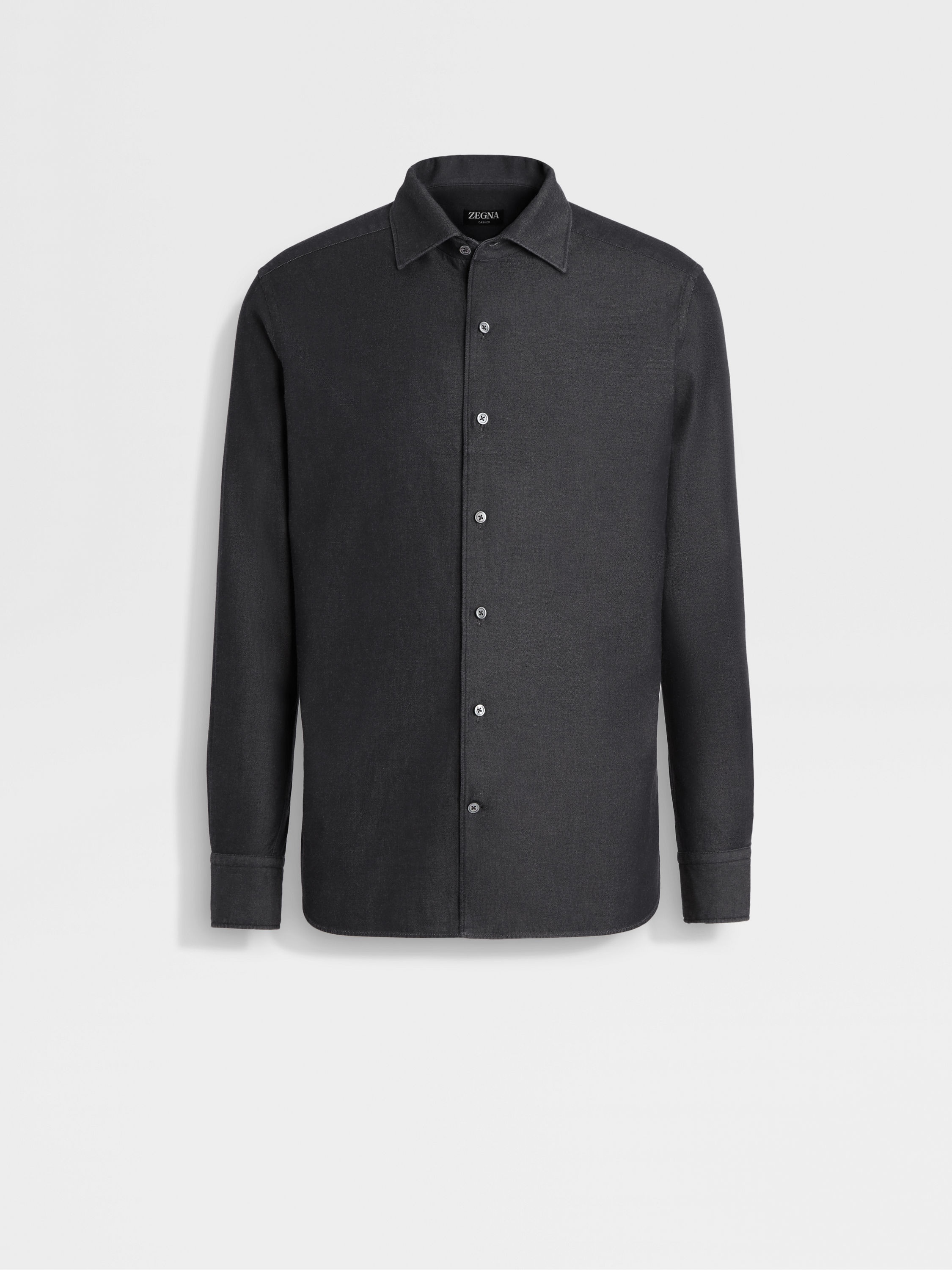 Zegna presents a sophisticated take on an enduring favorite with the dark grey Cashco shirt. INFO The dark grey Cashco shirt is made from a luxuriously soft and breathable cotton and cashmere denim. The elevated, long-sleeve denim shirt is finished with a stone wash. It is topped off with a one-piece collar. PRODUCT CODE UEX23A8-SRO1-005 MATERIALS AND CARE 95% Cotton; 5% Cashmere This garment is crafted from a luxurious blend of cashmere and cotton for exceptional softness and breathability. Max washing temp 30°C. Do not bleach. Do not tumble dry. Line drying in the shade. Iron at max 110°C. Professional dry cleaning in tetrachloroethene and hydrocarbons. FIT AND PRODUCT DETAILS • Regular fit • One-piece collar • Standard cuffs • Button closure • Rounded hem • Stone wash • 79 cm length on size 39