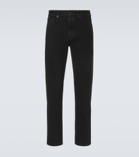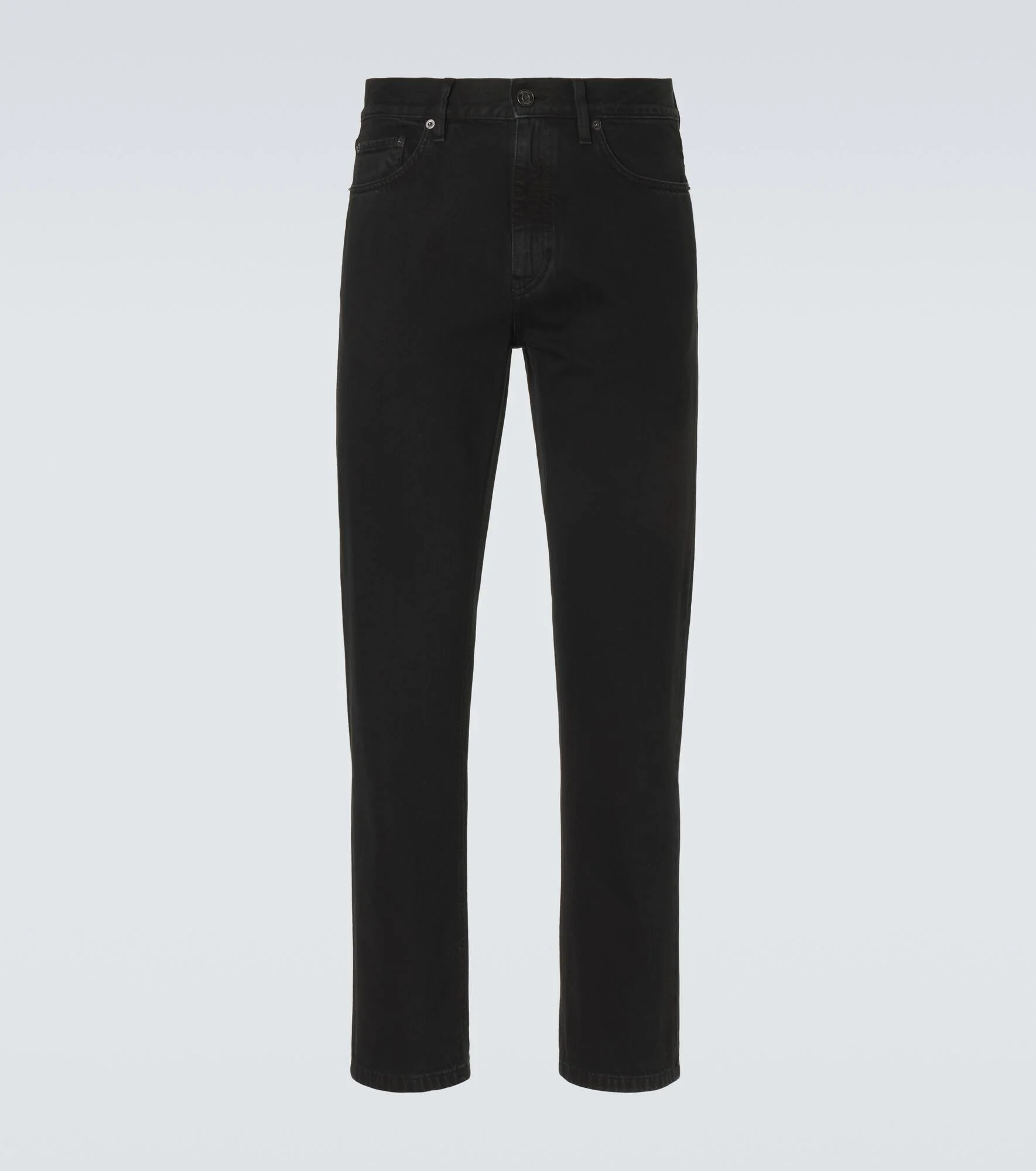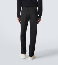 Established with the aim to create the world’s finest fabrics, Zegna is now the go-to brand for luxurious and innovative menswear. These black jeans are shaped into a classic straight-leg silhouette. Product Details - Material: 100% cotton - Care instructions: machine wash at 30 degrees - Made in Romania - Color: black - Designer color name: Black - Lining: 100% cotton - Details: 100% calf leather - Contains non-textile parts of animal origin - Closure: zipper fly, button fastening - Pockets: five pockets - Item number: P01137449 Size & Fit - True to size - Non-stretchy fabric - Slim-leg - Mid-rise - The model in the picture is 185cm-6'1" and wearing a size 32